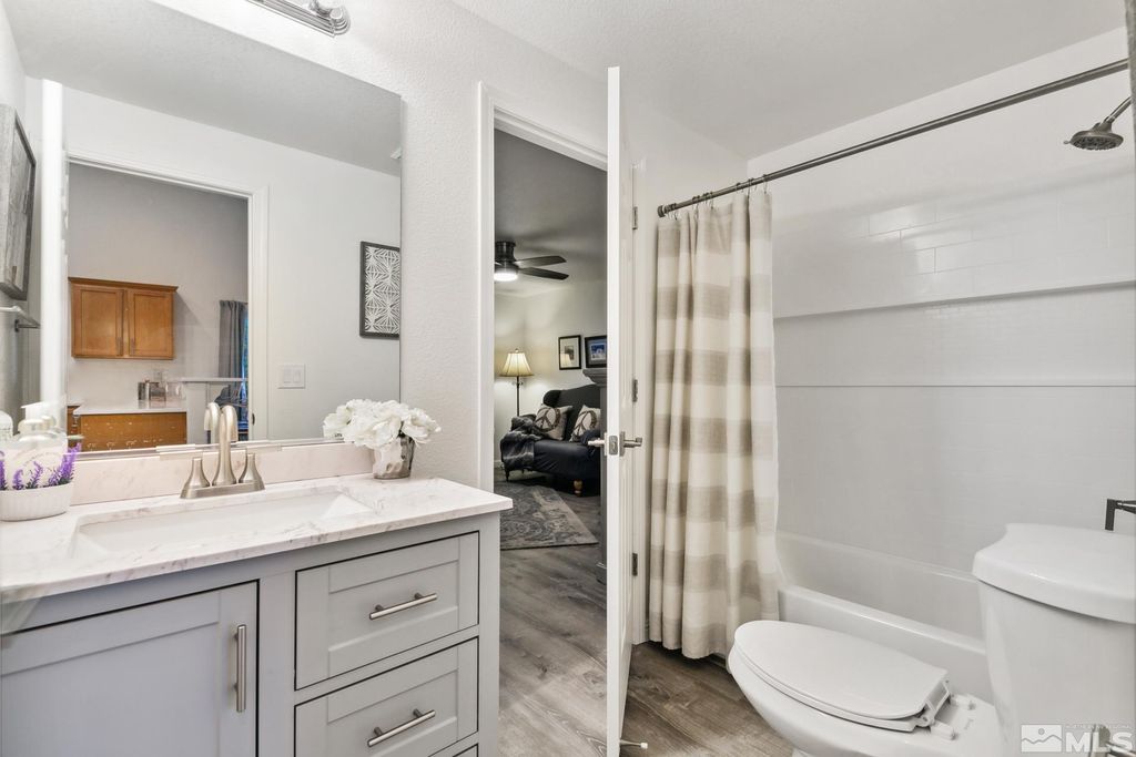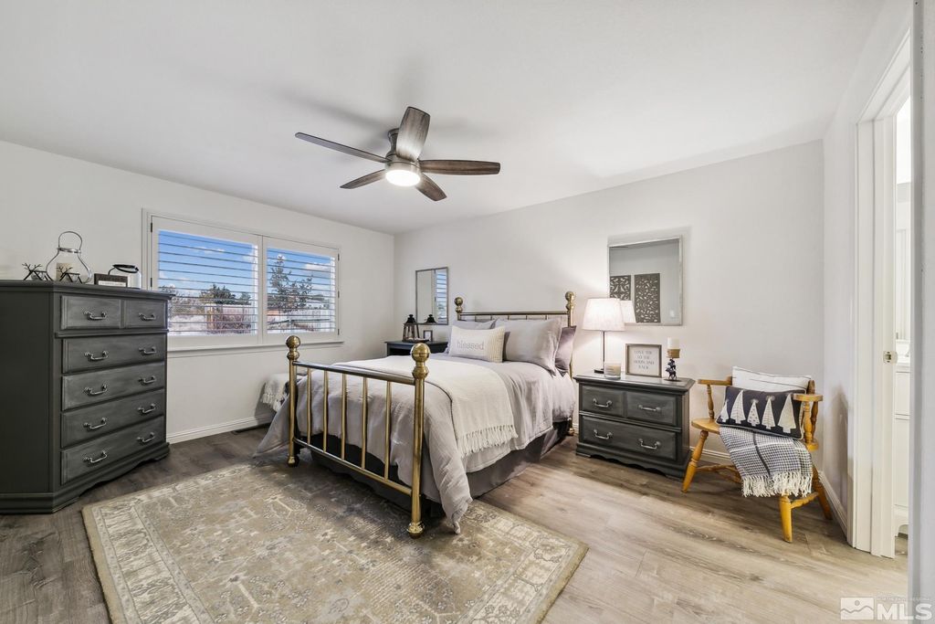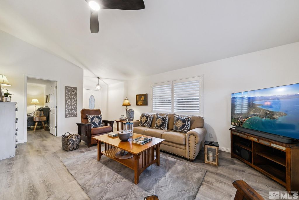 LOOKING for a STUNNING and meticulously remodeled GEM of a home in an EXCEPTIONAL location Experience the best of both worlds at 10 Conner Way, in Pine View Estates - peaceful, nature-inspired living with the downtown Minden/Gardnerville just minutes away. This beautifully updated light, bright and airy, elegant two bedroom, two bathroom home offers a perfect blend of modern upgrades and an abundance of natural light, highlighting the beautiful Life-Proof wide plank luxury vinyl flooring throughout,, providing durability and style. The neutral, completely repainted interior creates a warm and inviting atmosphere and plenty of space, perfect for entertaining and relaxing while enjoying the serene setting. This remodeled beauty features vaulted ceilings, an open living area and dining area and plantation shutters throughout the home, a sleek, remodeled kitchen with stunning Bianco Calcutta quartz countertops, all new energy efficient stainless steel GE Appliances, elevated breakfast bar with quartz counters, oversized upgraded sink/faucet, pantry in Laundry room and ample cabinet space in the kitchen and pantry/laundry room. Additional upgrades include remodeled bathrooms: Master Bathroom ensuite has a K hler dual sink vanity with Bianco Calcutta quartz , sleek glass enclosure shower/shower surround, new plumbing fixtures. The second bathroom has a new vanity with quartz top, shower/shower enclosure, plumbing fixtures, lighting, etc. The interior of the home also features new modern ceiling fans, all new interior and exterior modern light fixtures/lighting, upgraded hardware on interior doors, tankless water heater, new baseboards, door trim, NEST thermostat, RIng camera surveillance system and much more. Enjoy beautiful mountain views while sitting on your covered front porch or BBQing in your spacious backyard! The backyard is a true retreat, with expansive outdoor paver patios and ample space for entertaining while offering breathtaking mountain & valley views perfect for relaxation while taking in the backdrop of Nevada's scenic beauty.. Enjoy hiking, biking and exploring right from your home with a rear access gate and tall chain link fence in the backyard, also providing exceptional views of the natural terrain and direct access to BIA land. This well cared for move-in-ready home situated on a large, beautifully landscaped lot with mature trees, vibrant flowers, lush green lawn, expansive outdoor rear entertaining area, is matchless for time spent with family & friends, barbecuing or even stargazing while enjoying the serene & peaceful setting. Short 30 minute drive to beautiful Lake Tahoe to enjoy all it has to offer - skiing, boating, hiking, biking, camping and minutes from downtown Minden/Gardnerville with quaint shops, restaurants, galleries, antique stores & parks. One hour from the Reno/Tahoe International Airport. Fully Insulated 2 Car Garage, Fully landscaped front and rear and automatic drip system/sprinklers with Orbit Wi-Fi enabled controller for easy maintenance/control remotely from your phone. Fully fenced backyard is perfect for pets and privacy. Bonus landscaped side yard rock retention basin/easement outside wood fencing is included in lot square footage, providing for extra privacy buffer between neighboring home. HOA covers water, sewer, snow removal, road maintenance and common areas. HOA also includes RV storage lot onsite for a nominal fee. Offered Partially Furnished (per inventory) Don't miss this rare opportunity to make this stunning remodeled house your new dream home!