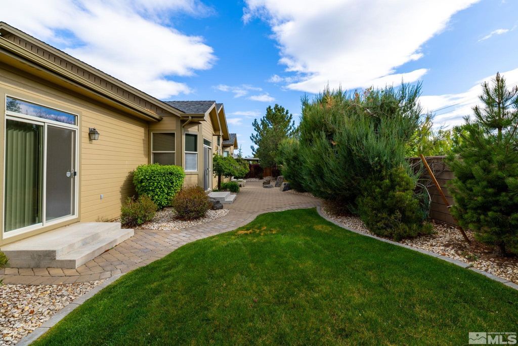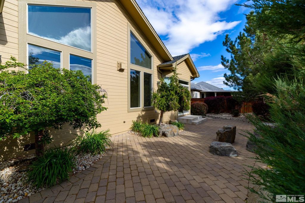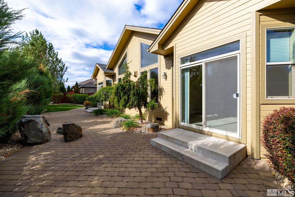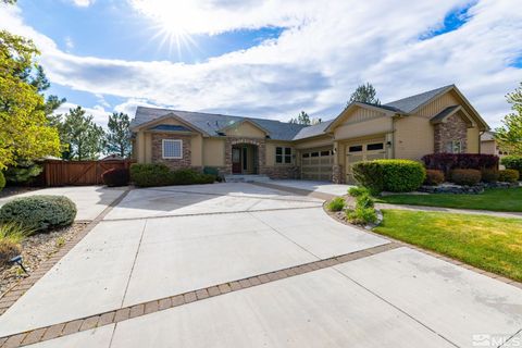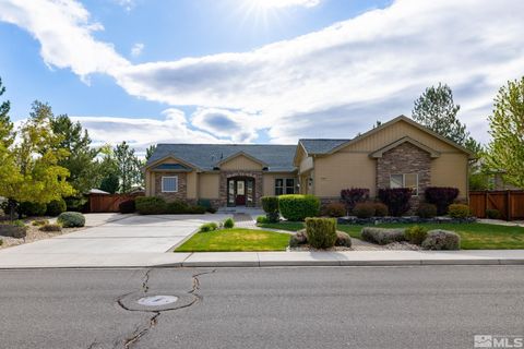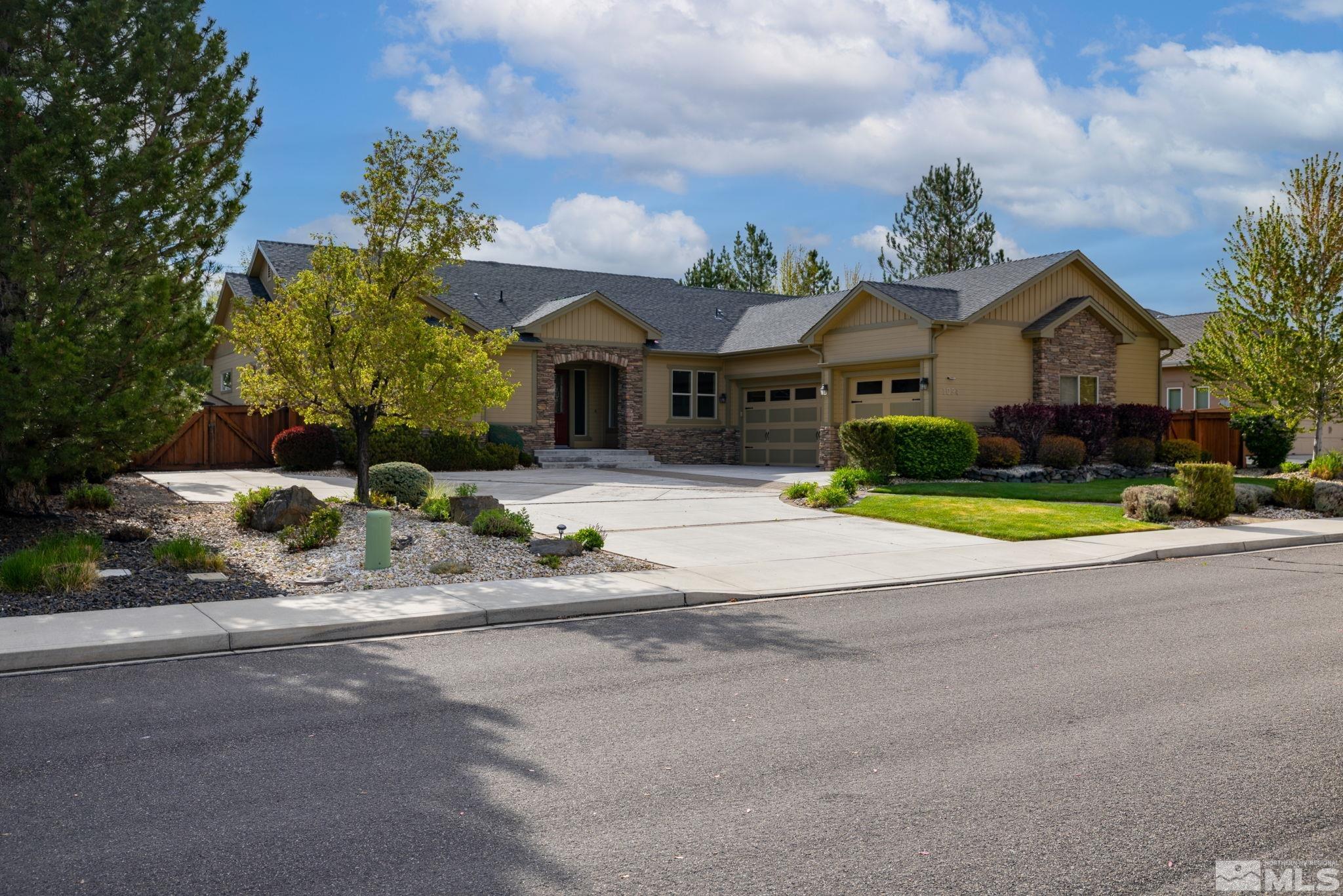 Meticulously maintained and beautifully crafted, this exceptional home in the sought-after Rocky Terrace subdivision offers a perfect blend of elegance and modern upgrades. A grand formal entry welcomes you into the spacious great room, where soaring vaulted ceilings and cathedral windows frame peekaboo mountain views. The striking ledgestone rock hearth fireplace adds a touch of warmth and character to the open, airy space., The expansive kitchen is a chef's dream, featuring abundant cabinetry, gleaming granite countertops, and premium stainless steel appliances, including a 5-burner GE Profile gas range, and a brand new microwave. Two breakfast bars offer ample seating for casual dining and are perfect for hosting friends and family. The well-thought-out split floorplan provides privacy for the master suite, which boasts an elegant travertine-appointed bathroom. Both the master and guest bathrooms have been upgraded with newly installed bidets, adding a level of luxury and comfort. Two guest bedrooms are conveniently connected by a Jack and Jill bathroom, offering private access for each room and featuring dual sinks, ample storage, and a shared shower/tub combination - a practical and comfortable arrangement for family or guests. A cozy office nook in the hallway features a built-in desk, overhead cabinets, and shelving, creating a functional workspace with plenty of storage. This home also offers a garden bed in the backyard, perfect for a vegetable garden, allowing you to enjoy homegrown produce. This home is equipped with modern conveniences, including a Generac backup generator that automatically activates during power outages, new carpet (2018), a central vacuum cleaner, a solar tube in the laundry room (2022) that brings in extra natural light. The exterior was freshly painted (2022), leaf filters were added to the gutters (2023), and the entire HVAC system was professionally cleaned in 2024 for optimal performance. Also, the home is listed as having a 3 car garage, but the single car bay is oversized so it's more like a 3 and a half car garage! Extra room for your toys and tools! Located just minutes from town, this meticulously maintained home offers privacy, peekaboo mountain views, and easy access to all the amenities Gardnerville has to offer. Don't miss the opportunity to make 1094 Rocky Terrace your forever home! Home and carpets were just professionally cleaned.