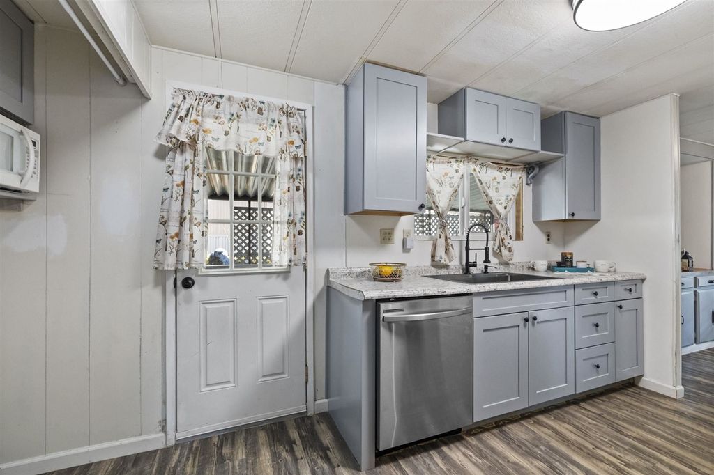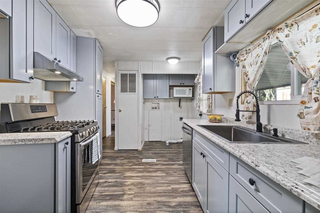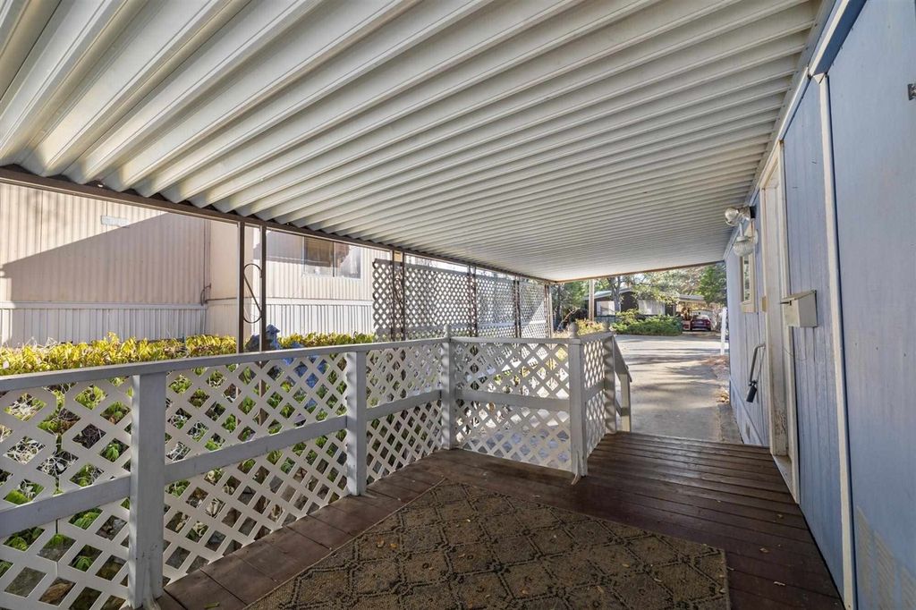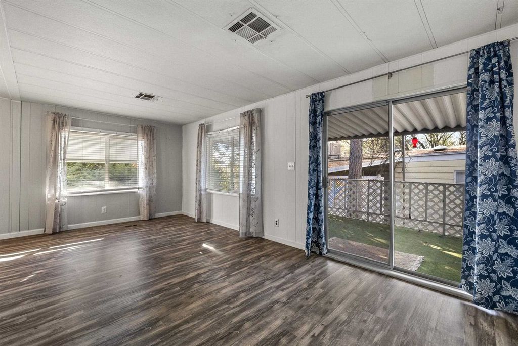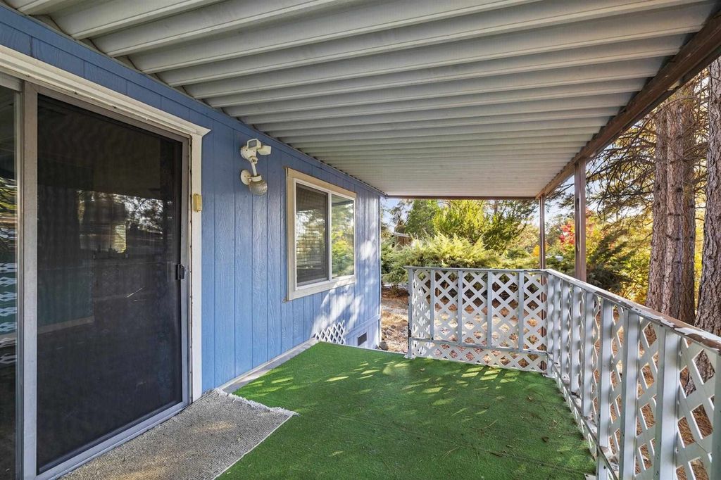 Cute & Cozy! Welcome home to Space #122 offering 2 bedrooms, 2 bathrooms, 980 Sqft. and is located in the highly desirable Columbia Sky Mobile Home Park, an active 55+ community! This home provides an efficient floor plan with a cozy living room & sliding glass door with access to the covered deck. The living room flows right into the dining room which offers a built in hutch for all of your decor & tableware. Next is the walk through galley style kitchen with updated soft close cabinets, solid surface counter tops, & stainless steel appliances. Down the hall is the guest bedroom with a window A/C unit & guest bath with a tub shower combo & single vanity. The generously sized primary bedroom is complete with 2 walk in closets, ceiling fan, and a fun accent wall. The primary bath has a large stall shower & single vanity. To complete the picture, the home has been updated with NEW WINDOWS, NEW ROOF, newer laminate flooring throughout, central heat, & a swamp cooler which is ducted throughout the home. Living in Columbia Sky, residents can enjoy the community pool & clubhouse within the park & also being minutes away to the Historic town of Columbia & amenities of Downtown Sonora!