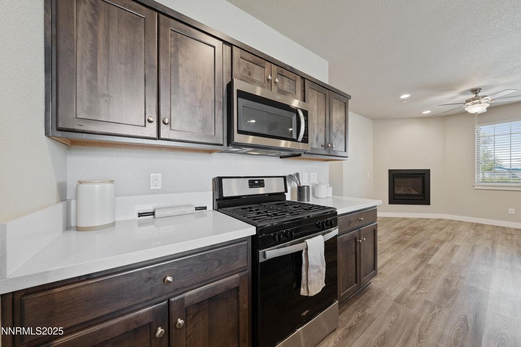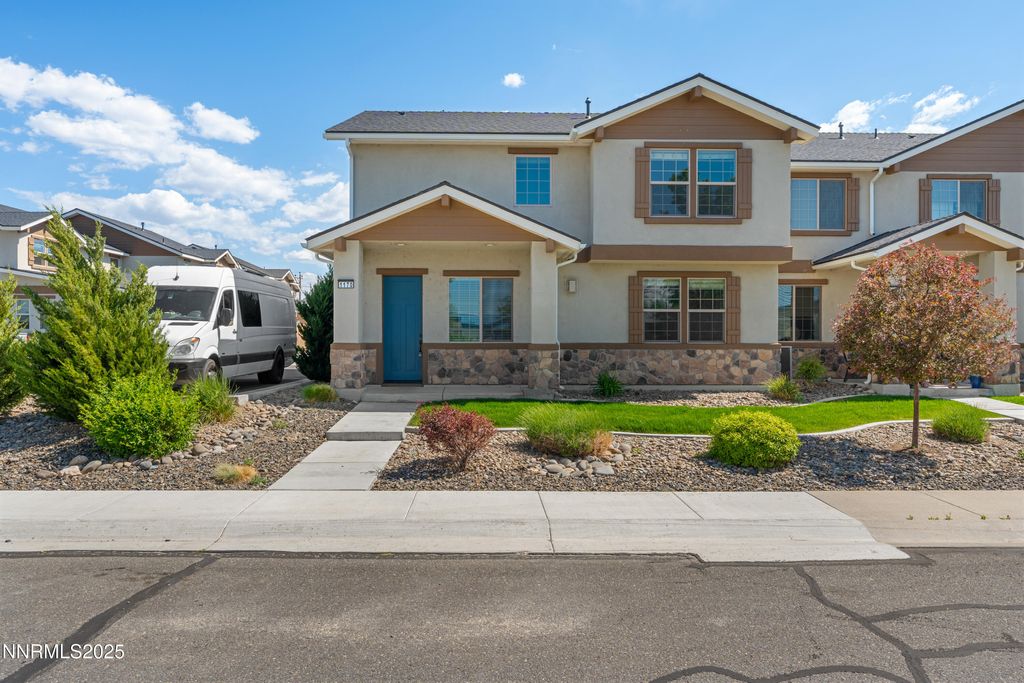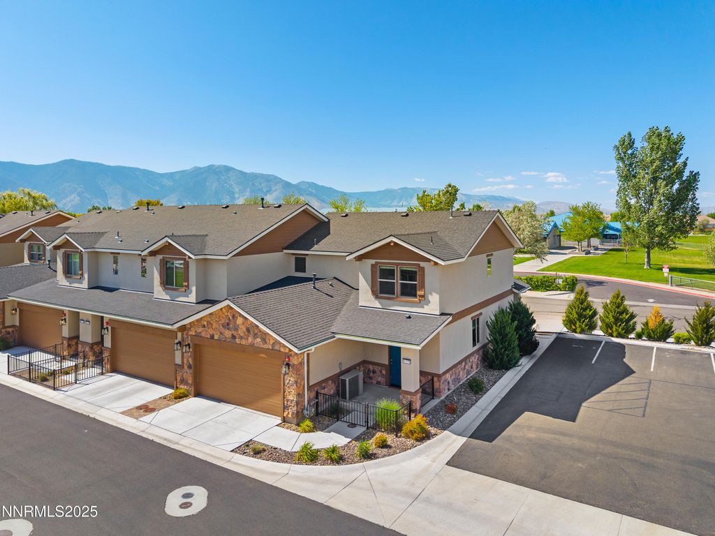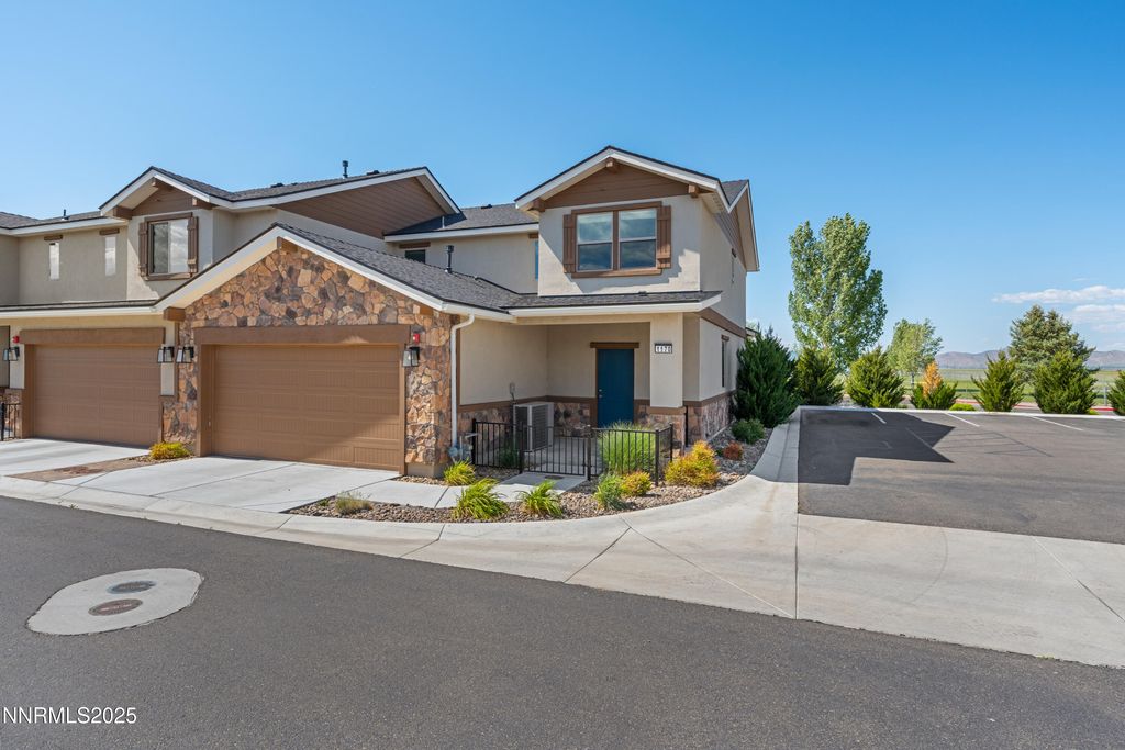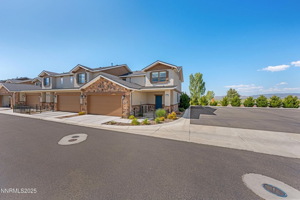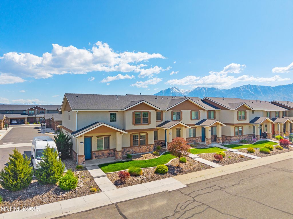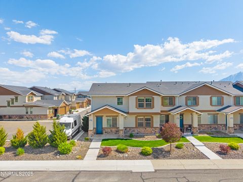 Welcome to this beautiful corner townhome in the sought-after Townhomes at Monterra community, nestled in the charming town of Minden, NV. Built in 2020, this modern home effortlessly combines comfort and style. Step inside to find elegant luxury vinyl plank flooring throughout the main living areas, with plush new carpeting in the bedrooms for added warmth and comfort. Fresh touch-up paint throughout gives the home a clean, well-maintained feel. The kitchen is truly a chef's dream, featuring a gas range stove, built-in microwave, and a spacious island that doubles as a dining table - perfect for meal prep and casual dining. Ample cabinetry and a generous pantry provide plenty of storage for all your culinary essentials. Relax in the living room by the inviting gas log fireplace, ideal for cozy evenings or entertaining guests. The primary bedroom is conveniently located on the main floor and includes a ceiling fan and a private en-suite bathroom that offers a spa-like retreat every day. Upstairs, a versatile loft awaits, perfect for a family room, home office, or game area. You'll also find three spacious bedrooms and a full bathroom, offering plenty of room for family and guests. Additional guest parking is conveniently located nearby, making hosting easy and hassle-free. This lovely townhome sits just across the street from Minden Elementary School and is only a short distance from downtown Minden, putting shopping, dining, and community amenities within easy reach. Experience the perfect blend of modern living and small-town charm in this exceptional home!