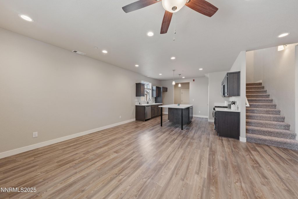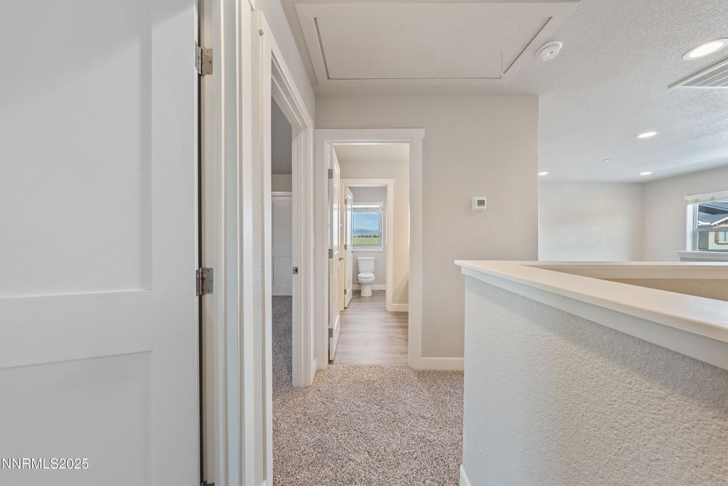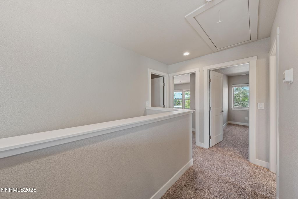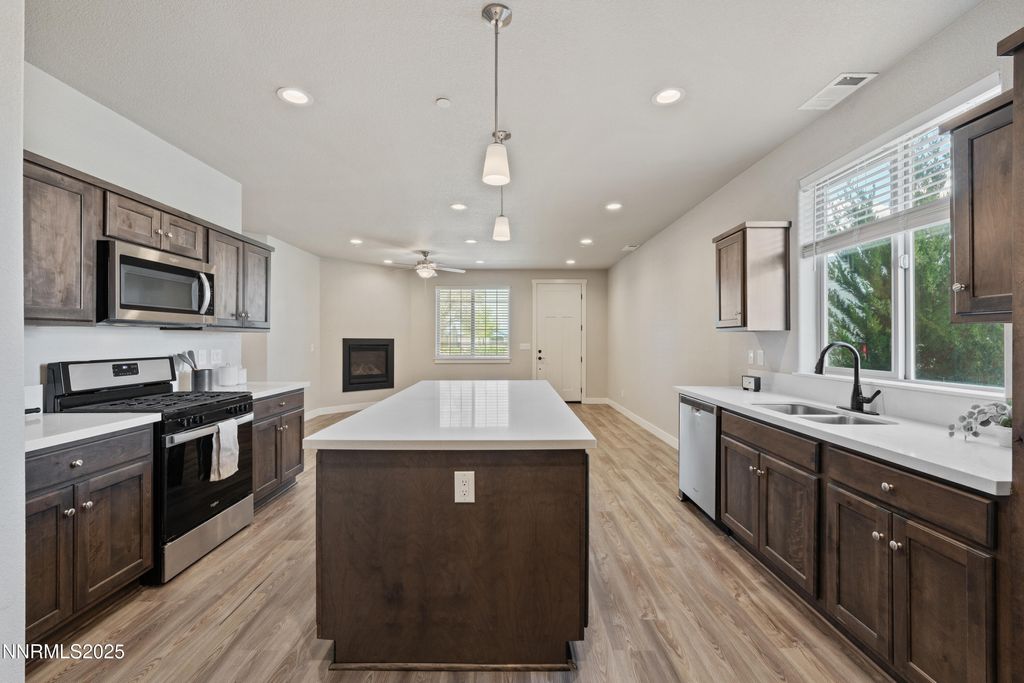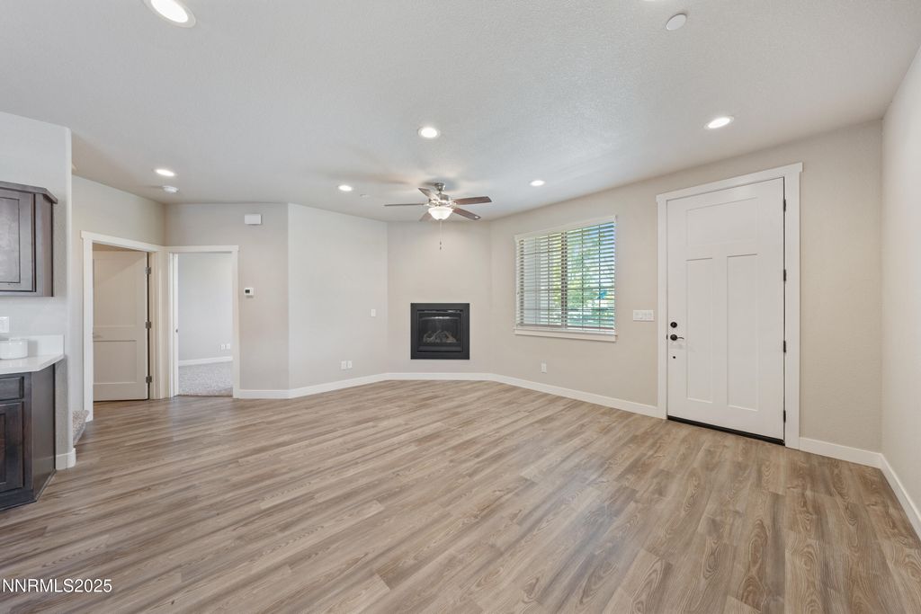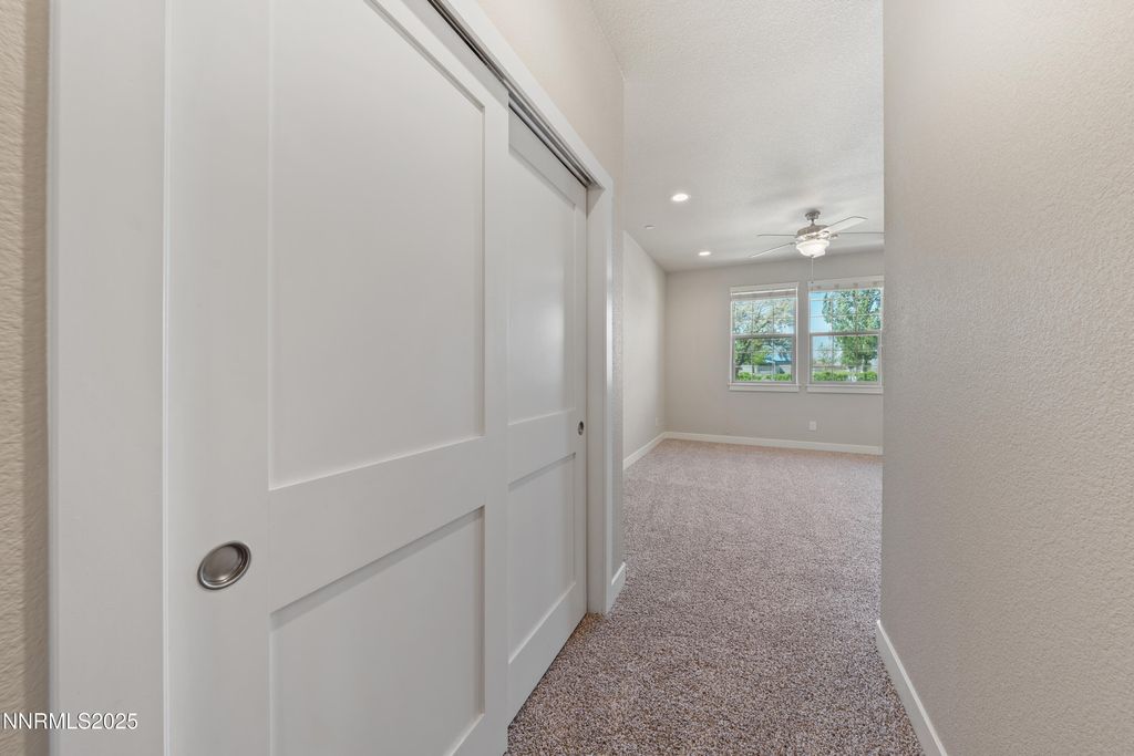 Welcome to this beautiful corner townhome in the sought-after Townhomes at Monterra community, nestled in the charming town of Minden, NV. Built in 2020, this modern home effortlessly combines comfort and style. Step inside to find elegant luxury vinyl plank flooring throughout the main living areas, with plush new carpeting in the bedrooms for added warmth and comfort. Fresh touch-up paint throughout gives the home a clean, well-maintained feel. The kitchen is truly a chef's dream, featuring a gas range stove, built-in microwave, and a spacious island that doubles as a dining table - perfect for meal prep and casual dining. Ample cabinetry and a generous pantry provide plenty of storage for all your culinary essentials. Relax in the living room by the inviting gas log fireplace, ideal for cozy evenings or entertaining guests. The primary bedroom is conveniently located on the main floor and includes a ceiling fan and a private en-suite bathroom that offers a spa-like retreat every day. Upstairs, a versatile loft awaits, perfect for a family room, home office, or game area. You'll also find three spacious bedrooms and a full bathroom, offering plenty of room for family and guests. Additional guest parking is conveniently located nearby, making hosting easy and hassle-free. This lovely townhome sits just across the street from Minden Elementary School and is only a short distance from downtown Minden, putting shopping, dining, and community amenities within easy reach. Experience the perfect blend of modern living and small-town charm in this exceptional home!
