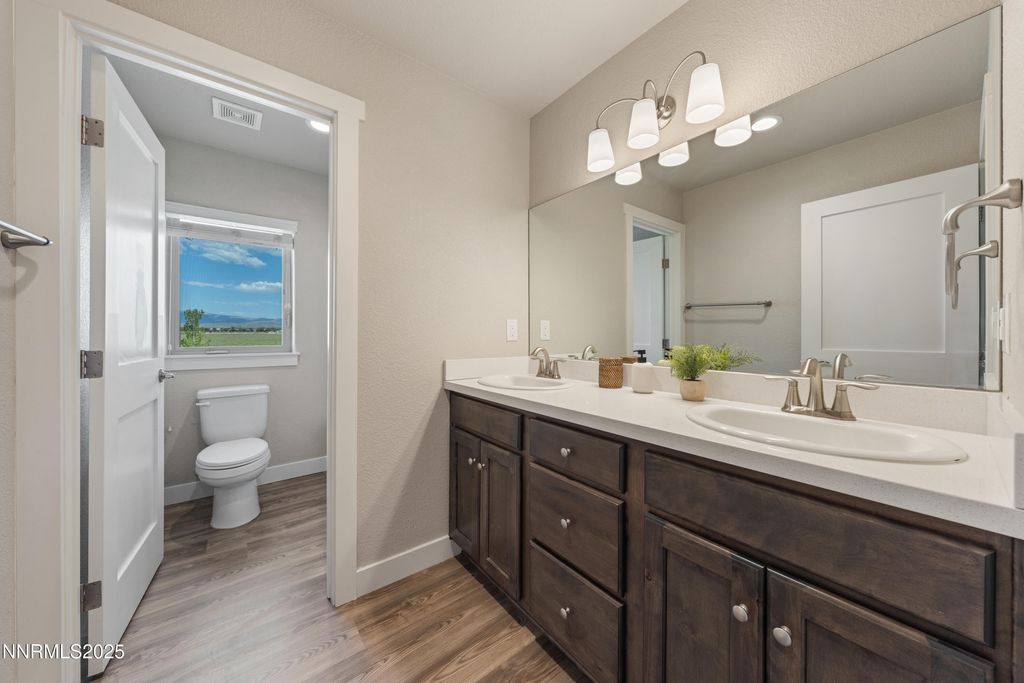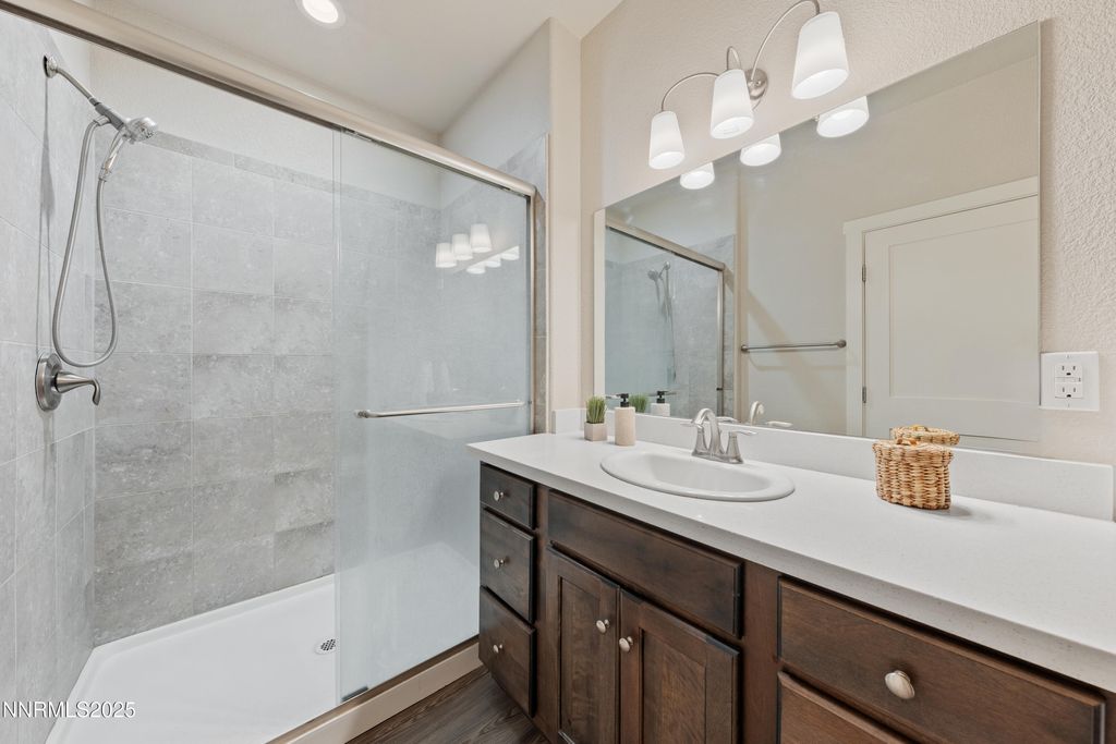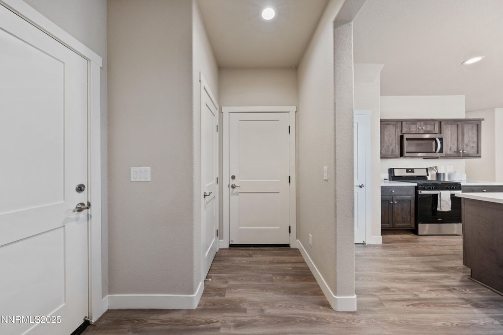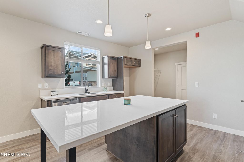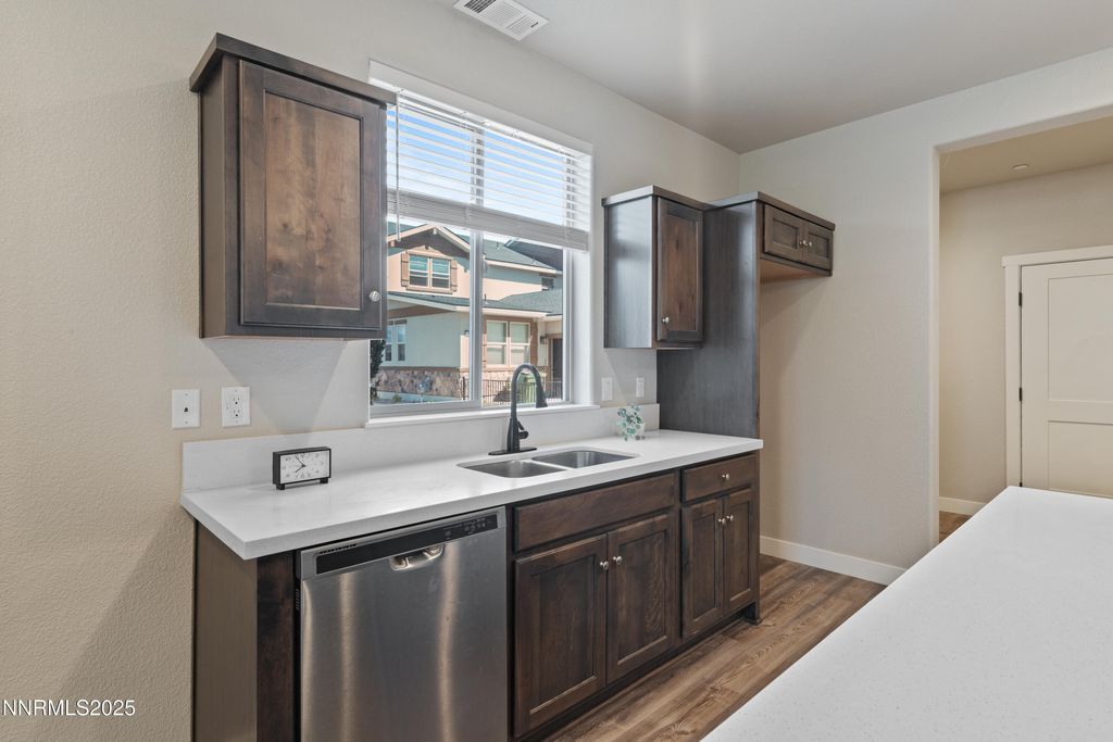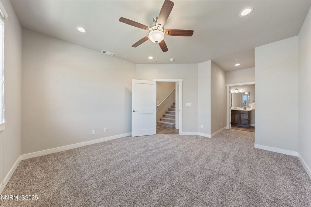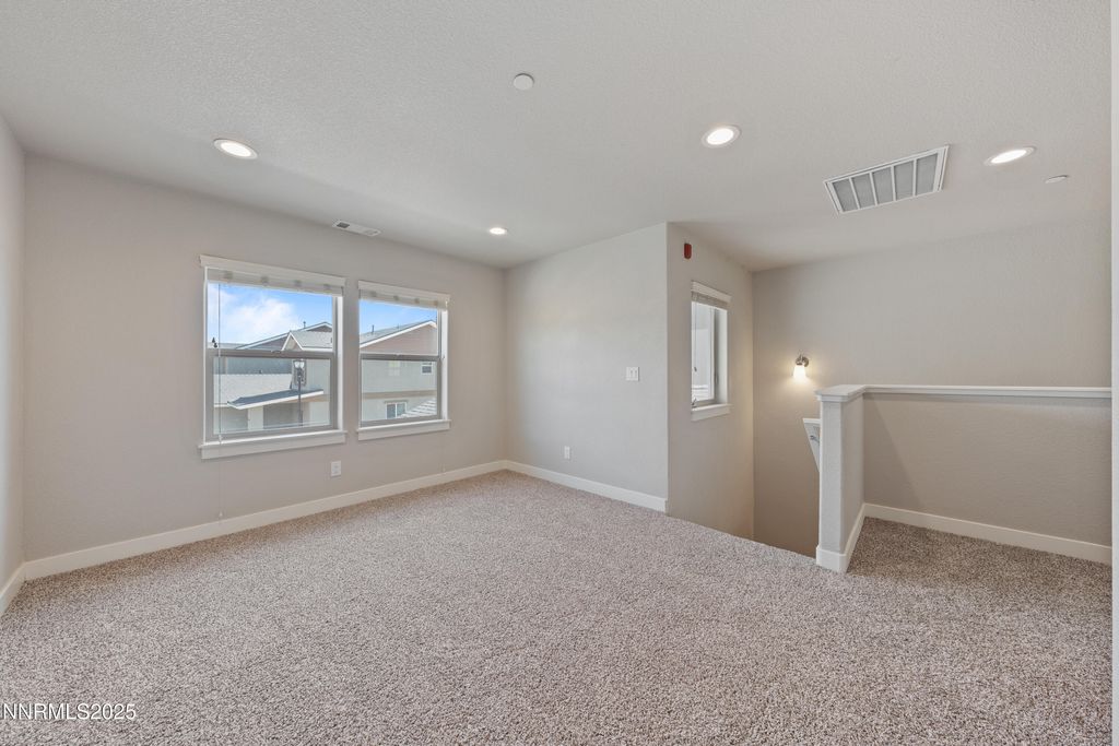 Welcome to this beautiful corner townhome in the sought-after Townhomes at Monterra community, nestled in the charming town of Minden, NV. Built in 2020, this modern home effortlessly combines comfort and style. Step inside to find elegant luxury vinyl plank flooring throughout the main living areas, with plush new carpeting in the bedrooms for added warmth and comfort. Fresh touch-up paint throughout gives the home a clean, well-maintained feel. The kitchen is truly a chef's dream, featuring a gas range stove, built-in microwave, and a spacious island that doubles as a dining table - perfect for meal prep and casual dining. Ample cabinetry and a generous pantry provide plenty of storage for all your culinary essentials. Relax in the living room by the inviting gas log fireplace, ideal for cozy evenings or entertaining guests. The primary bedroom is conveniently located on the main floor and includes a ceiling fan and a private en-suite bathroom that offers a spa-like retreat every day. Upstairs, a versatile loft awaits, perfect for a family room, home office, or game area. You'll also find three spacious bedrooms and a full bathroom, offering plenty of room for family and guests. Additional guest parking is conveniently located nearby, making hosting easy and hassle-free. This lovely townhome sits just across the street from Minden Elementary School and is only a short distance from downtown Minden, putting shopping, dining, and community amenities within easy reach. Experience the perfect blend of modern living and small-town charm in this exceptional home!