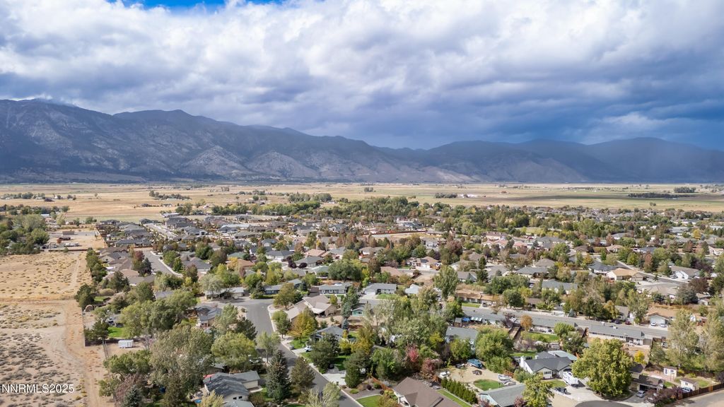 Discover your slice of Gardnerville, NV at 1193 Manhattan Way, where sweeping Sierra Nevada sunset views create a daily masterpiece from your doorstep. This thoughtfully designed three-bedroom, two-bathroom home spans 1680 square feet and sits on a generous .29 acres, offering the perfect blend of comfort and entertainment space, all on one convenient level just minutes from Lake Tahoe's pristine waters and Carson City, Nevada's state capital with excellent shopping opportunities and government services. You'll also enjoy close proximity to historic downtown Minden, where charming restaurants serve everything from casual fare to fine dining, entertainment venues provide year-round activities, and exciting casinos offer gaming and shows, all while maintaining the smaller city, relaxed atmosphere that embodies the Nevada lifestyle. The heart of this home showcases an open floor plan concept anchored by a welcoming fireplace, creating seamless flow between living areas. The kitchen features beautiful granite countertops that complement the light and bright atmosphere enhanced by newer windows and updated laminate flooring throughout. Two fireplaces ensure cozy evenings year-round - choose between the crackling warmth of the wood-burning fireplace or the efficient comfort of the pellet stove. Your primary bedroom sanctuary includes a luxurious soaking tub surrounded by elegant stone work, while a charming bench with abundant storage sits perfectly positioned by the great room window. The large bonus room off the back provides versatile space with its own pellet stove and clever sliding barn door for privacy when desired, plus convenient backyard access for seamless indoor-outdoor living. Step outside to your expansive backyard oasis featuring a peaceful fountain, while the front welcomes guests with a covered pergola complete with its own fountain feature. Practical perks include recreational vehicle parking for your adventure-ready lifestyle and no homeowners association restrictions, giving you freedom to truly make this space your own. With quick highway access via Route 88 and 395, you'll enjoy connectivity while maintaining mountain living charm. Nearby Lampe Park and Minden Park offer recreational opportunities, while the Carson Valley Swim Center and Douglas High School serve community needs. This single-level gem combines Sierra Nevada beauty with modern conveniences. (Seller will credit the Buyer six thousand dollars for a new driveway.)