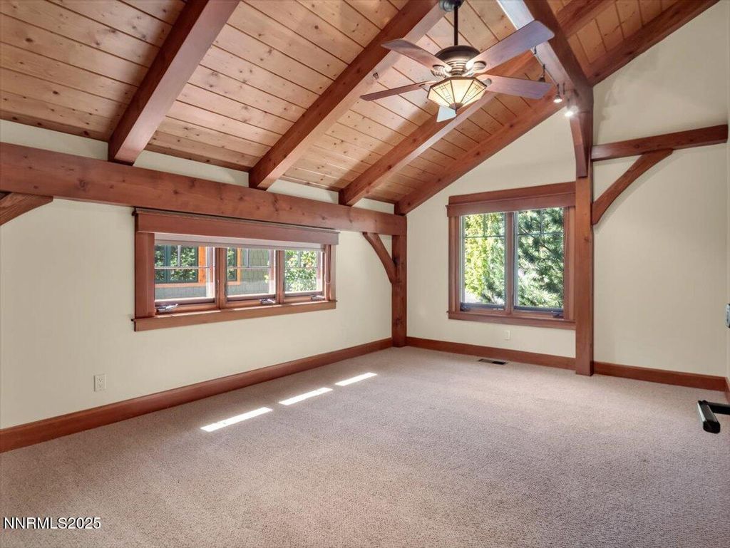 Set among towering pines in the prestigious gated enclave of Jobs Peak Ranch, this nearly 7,000 square foot craftsman estate is a distinguished mountain retreat that blends timeless design with modern comfort. Nestled high on the eastern slopes of the Sierra Nevada, it commands sweeping panoramic views of the surrounding peaks - a serene and majestic backdrop that few properties can offer. Situated on three private acres, the residence is approached by a stately circular drive, setting a tone of elegance and arrival. Inside, soaring ceilings and walls of glass showcase the grandeur of the Sierra, while rich woodwork and fine stone finishes create a warm, inviting ambiance. Every room is bathed in natural light, with breathtaking mountain vistas at every turn. Thoughtfully designed for both comfortable living and gracious hosting, the floor plan features four bedrooms, including two primary suites, along with a study, den, and a private apartment complete with its own kitchen and entrance. Dual living areas and expansive decks allow for effortless entertaining, whether hosting intimate gatherings or welcoming extended family. From the gourmet kitchen to the wine cellar and inviting recreation spaces, every detail reflects craftsmanship of the highest caliber. The location offers the best of Northern Nevada's sought-after lifestyle. Within minutes, you can enjoy the crystal-clear waters of Lake Tahoe, world-class skiing, fine dining, and premier entertainment. Reno-Tahoe International Airport is just 45 minutes away, ensuring ease of travel while maintaining the tranquility of a private mountain estate. Nevada's favorable tax environment further enhances the appeal for discerning buyers. To recreate a residence of this scale, quality, and custom artistry today would approach five million dollars - a testament to the care and craftsmanship invested in every detail. This is not merely a home; it is a lasting legacy, an estate that offers rare value, timeless elegance, and a lifestyle defined by peace, privacy, and prestige. Schedule your private tour today and discover why Jobs Peak Ranch is considered the crown jewel of Sierra mountain living.