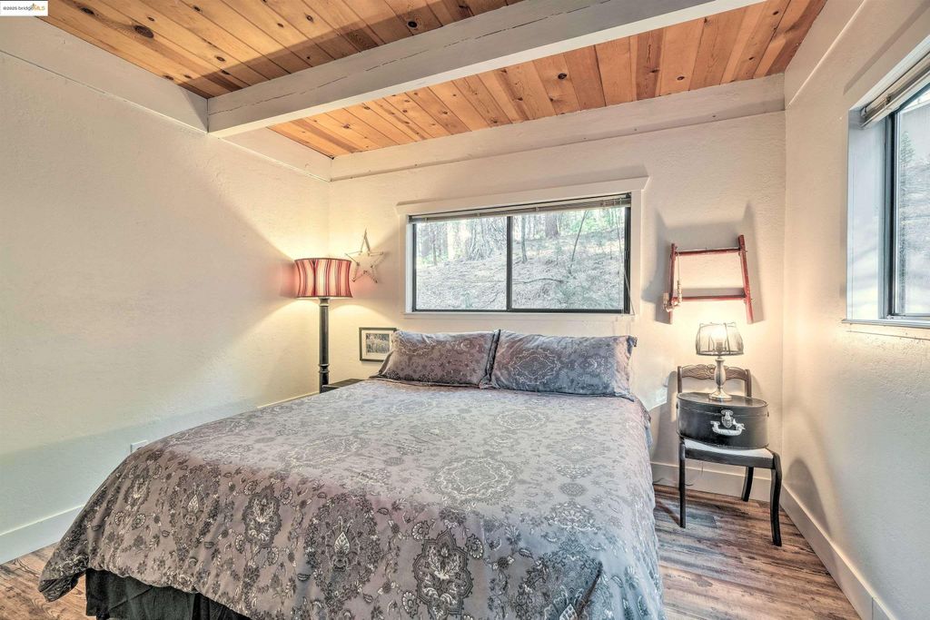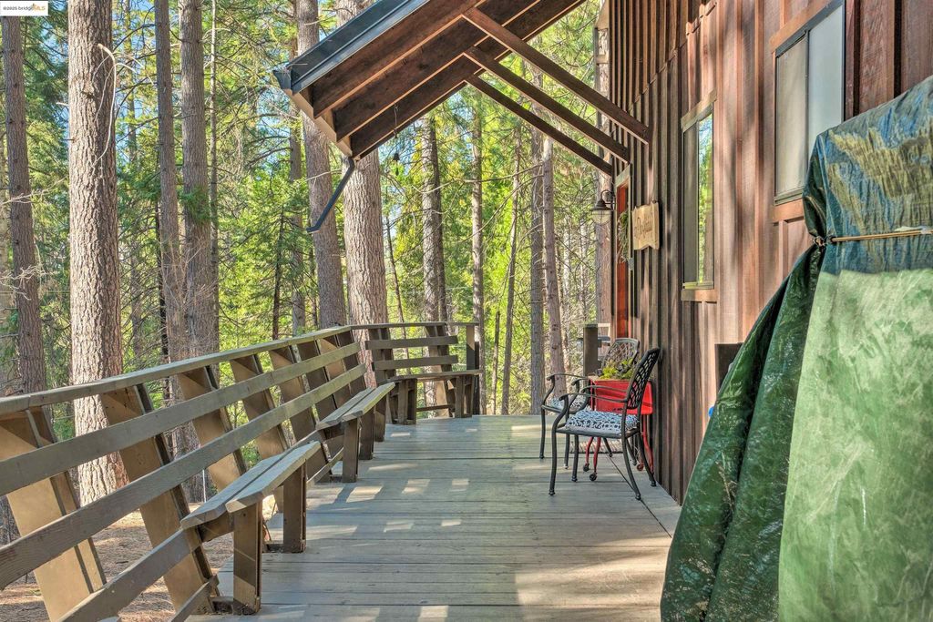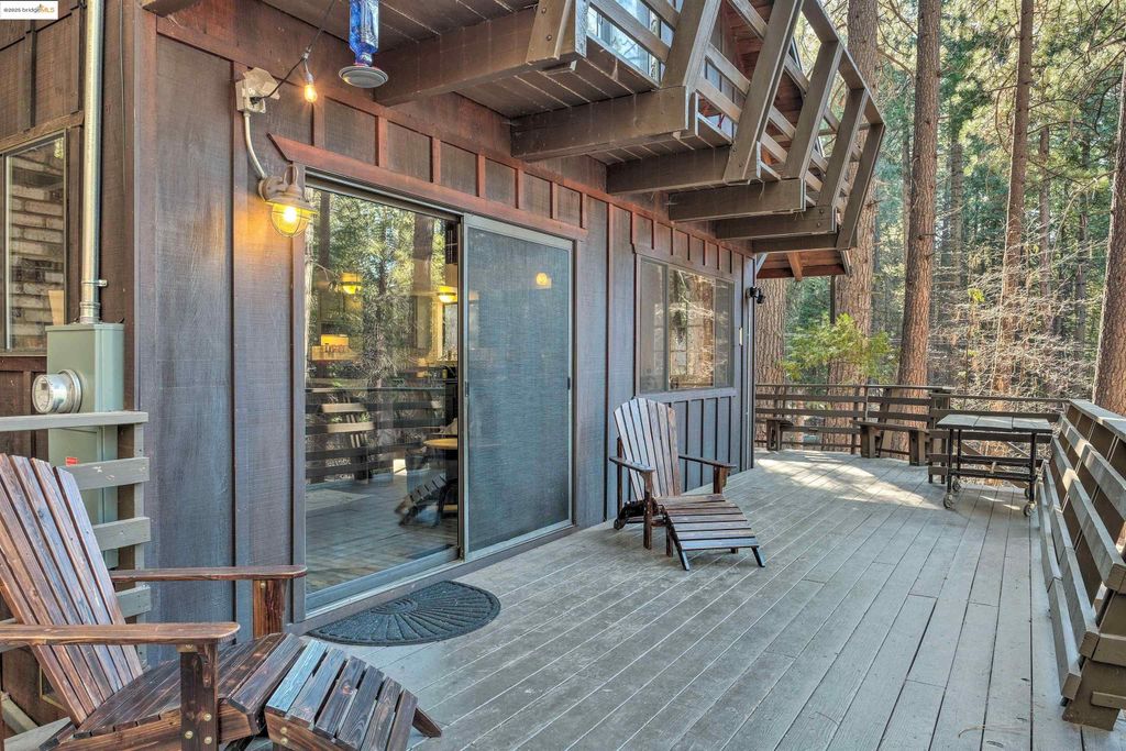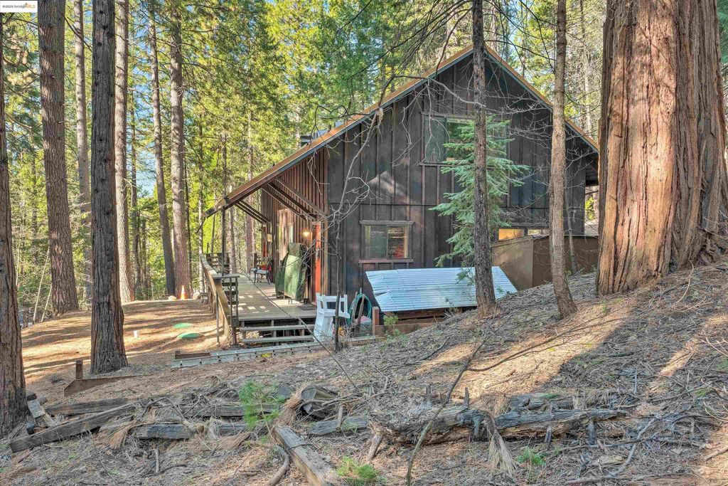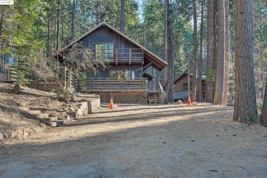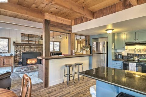 Welcome to the Sanctuary! Tucked away in the serene Sierra forest of Arnold, CA, this charming and eclectic two-story cabin in Lilac Park is a true hidden gem. Brimming with character, the fully furnished retreat blends rustic charm with vintage treasures, creating a warm and inviting atmosphere.The cozy living space is adorned with unique furnishings, decor, and wood accents, along with a raised hearth brick fireplace and wood beam ceiling that evokes a sense of nostalgia and comfort. The tastefully adorned kitchen boasts granite countertops with ample counter space,and a dining nook. Full bathroom and bedroom downstairs. The upstairs bonus room is set up as a 4th bedroom without a door, but with a curtain for privacy. Step outside onto a spacious wood deck porch, where you can sip morning coffee while listening to the gentle rustling of towering pines and watching the wildlife (deer, squirrel, foxes, birds).The peaceful setting is perfect for unwinding, whether you're basking in the crisp mountain air or stargazing on a clear night. Lilac Park itself offers a refreshing community pool, ideal for summer relaxation.Just a short drive away, you'll find charming shops, delightful restaurants, and local wineries perfect for a day of tasting and exploring.