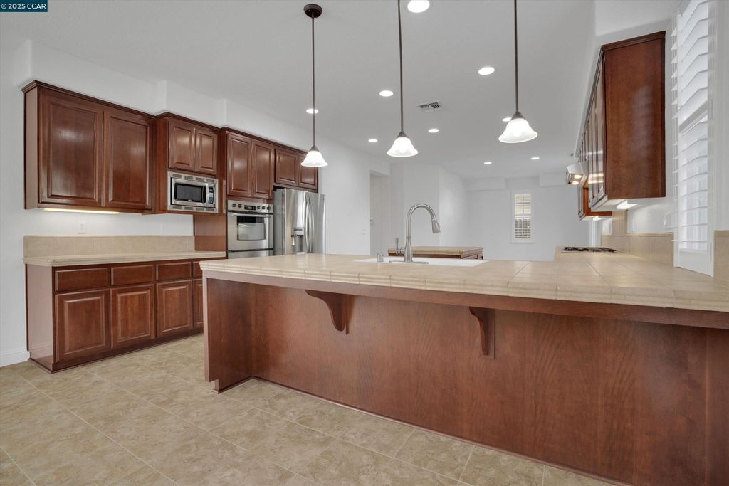 Welcome to 1411 Granite Creek Dr. - an executive-style home offering 5 bedrooms, 3.5 baths, and over 3,100 sq. ft. of living space! This beautifully upgraded residence features a desirable floor plan with a junior suite downstairs, perfect for guests or multi-gen living. The open-concept layout showcases a gourmet kitchen with island, cherry wood cabinets, stone countertops, stainless steel appliances, travertine floor, and a large island that flows seamlessly into the spacious living room. Enjoy a formal dining room and a private courtyard ideal for entertaining or morning coffee. Upstairs includes three bedrooms, a full bath, and an oversized primary retreat with a walk-in closet, sunken tub, and dual vanities. Upgrades include custom shutters, French doors, high ceilings, and dual-zone A/C. The low-maintenance backyard with two pergolas sets the scene for effortless outdoor living. Extra parking with a 3 car, tandem garage! Conveniently located near freeway access, schools, and downtown Patterson. With over $50,000 in upgrades, this home blends comfort, style, and sophistication in one perfect package!