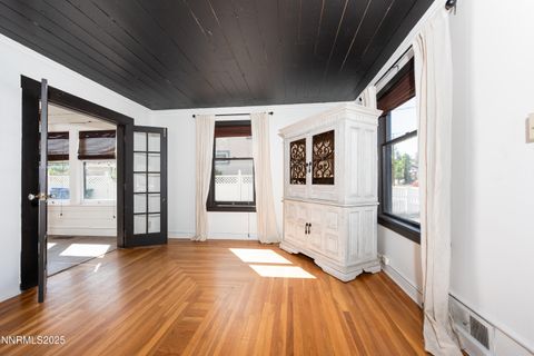 This charming 1941 home has character you don't see anymore. Step in to a warm sunroom entry where you can utilize the front flower boxes to brighten up your day. The living room features real hardwood flooring in a unique pattern. The large kitchen has updated features with the stove bringing back the original feel. The fully landscaped and fenced backyard is cozy and this home sits in the perfect downtown Gardnerville location. At this house, you'll be able to walk or ride to parks, restaurants, and everything downtown Gardnerville has to offer.