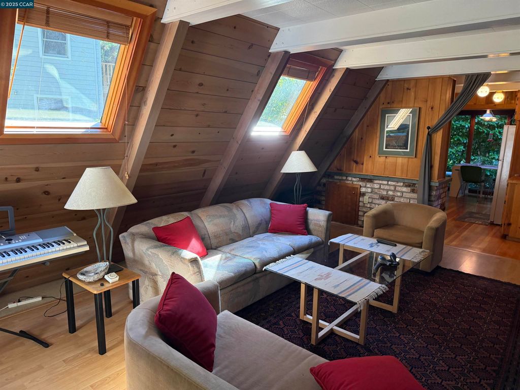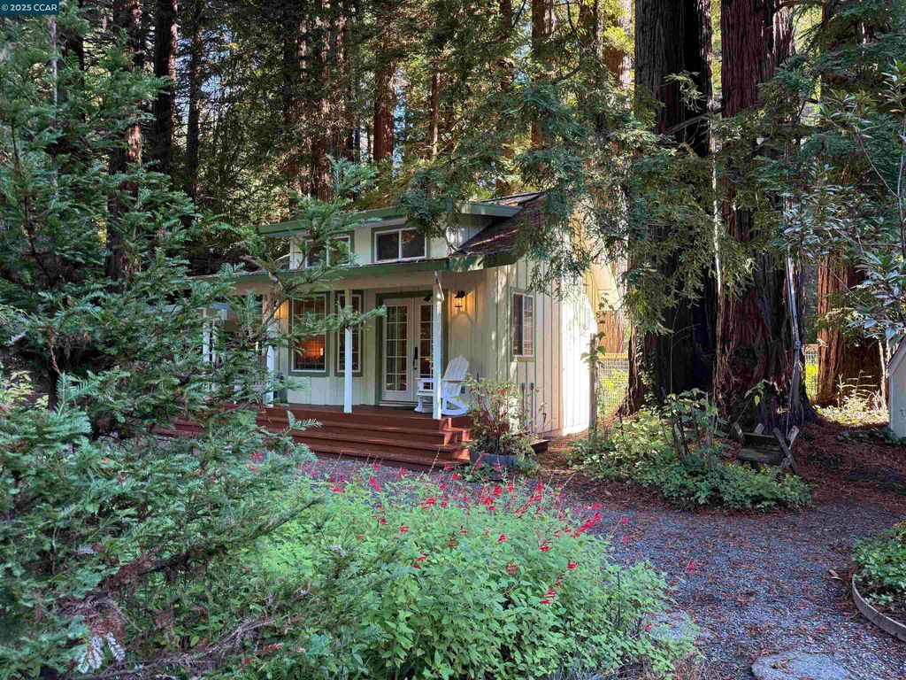 Discover the ultimate redwood retreat with this enchanting A-frame property, offering serene creekside living and a rare, separate artist studio in the heart of Cazadero. From the moment you arrive, the grounds captivate the senses. A suspended deck offers a front-row seat to the sights and sounds of the rushing creek, while a private redwood grove at the corner of the lot provides a perfect spot for a hammock on a sunny day. A fenced garden space is ready for your vegetables and spring bulbs, and the property even yields apples and plums in wet years. The main A-frame home features a warm living room anchored by a wood stove, a well-appointed kitchen, and two upstairs rooms where you can watch moonlight filter through the skylights. The detached artist studio is a significant bonus, offering a versatile space with a full bath and closet - ideal for guests, hobbies, or a remote workspace. This prime location blends peaceful seclusion with convenient access to local treasures. Explore the coast at Pomo Canyon and Jenner Headlands, enjoy the shops and restaurants of Duncan Mills and Cape Fear, or simply take in all Cazadero has to offer. With ample parking and space to entertain, this property is a true paradise. Don't miss this incredible Cazadero gem. Welcome home!