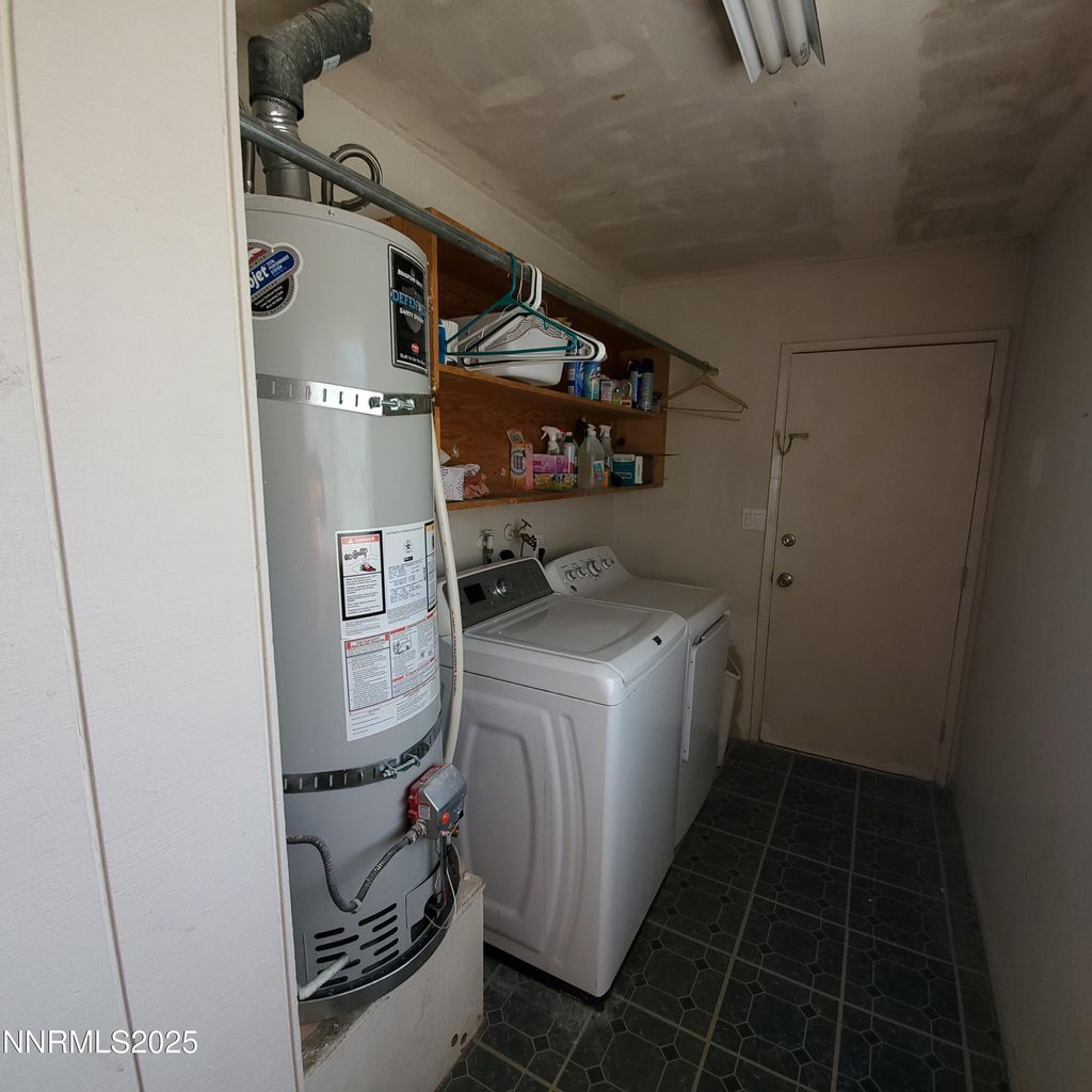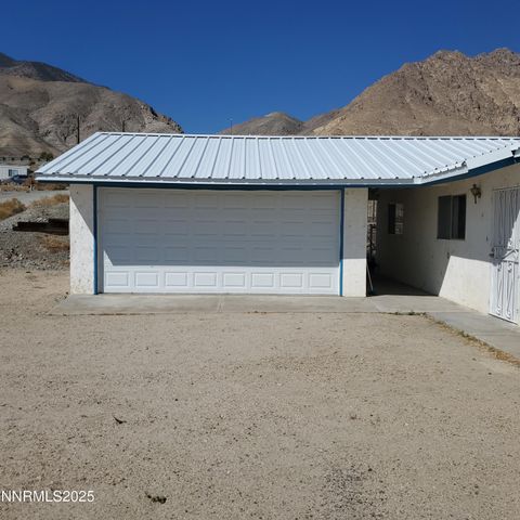 This 1,536 sq ft stucco home is surrounded by majestic mountains and offers a stunning view of Walker Lake. It features a detached two-car garage with a metal roof. Inside, the home includes laminate flooring, and electric range/oven, dishwasher, and a refrigerator in the kitchen, all designed with an open floor concept. There are two bathrooms, with the master suite boasting a step-in shower. The laundry room is equipped with a washer and dryer, and there is a newer hot water heater. A sliding glass door leads to a covered patio and a fenced backyard. Additionally, there is RV parking available, and the home is topped with a durable metal roof. Come see this home today.