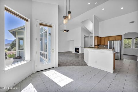 Corner lot. Sierra Views. RV parking. This home is ready for a quick move-in and personal touches. New Interior Paint throughout. Exceptionally maintained home in desirable Skyline Ranch. Perched on a thoughtfully landscaped corner lot that offers mature trees and shrubs. Enjoy your own special views of the Sierra too. The large and open great room offers expansive windows, abundance of natural light, and a floorplan perfect for entertaining. Natural privacy abounds while relaxing in the back yard on the patio or deck, & for the garden enthusiast there are 3 raised garden planters, a cold box and composting bins. RV Parking w/hookups. Truly a home to see. This home has been well cared for. The spacious kitchen offers plenty of counter and cabinet space as well as 2 pull-out bottom cabinets for easy storage. In addition to LVP flooring in the great room, entry, hall, dining, and primary bedroom the tile has been permatreat-ed for easy maintenance. Enjoy all four seasons with newer Graber blinds window coverings throughout. Large bonus room above the garage is a great space with lots of natural light as well as two windows for all day sun and views of the Carson Valley. The primary bedroom on the main floor offers double vanity, separate soaking tub and shower, water-closet with window, and a walk-in closet with added extra shelving for additional storage. 2 HVAC units (dual zoned 2 thermostats). The light fixtures have all been upgraded and replaced including 2 ceiling fans. The water heater was replaced in '23, new dishwasher in '15, exterior painted '17, and (1) new 1/3 HP to 1/2 HP garage door opener in '24 and added hanging storage racks in the garage. RV Hookup with sewer clean out AND 30 amp. Call your real estate agent today to schedule your private viewing. Buyer to verify.