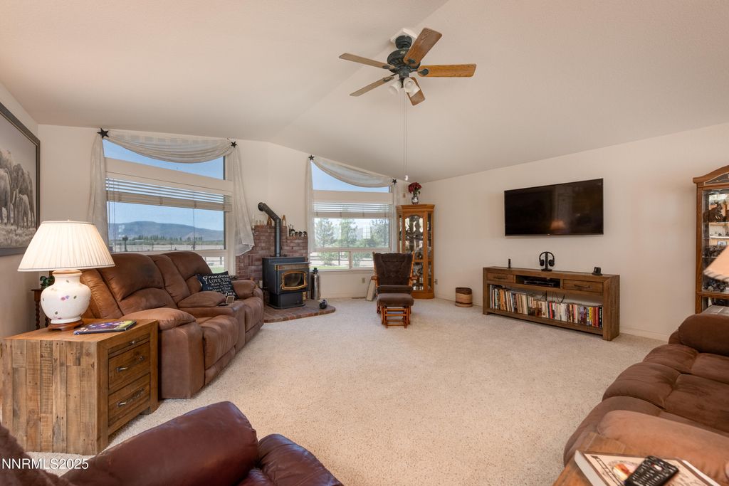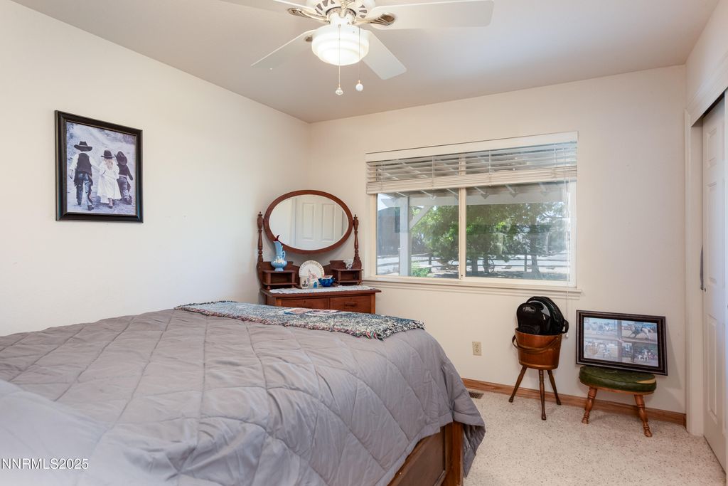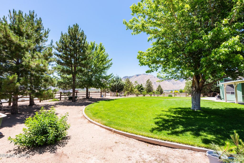 This light and bright split floor plan home features 3 bedrooms and 2 bathrooms, nestled on 4.81 acres in a peaceful rural setting. The spacious living room boasts large windows that frame breathtaking mountain views and a cozy pellet stove for chilly evenings. The kitchen is designed for both functionality and style with a center island and breakfast bar. The large primary suite features a walk-in closet and an en-suite bathroom, complete with a soaking tub, a separate shower stall, and dual vanity sinks. The generously sized hall bath also offers a dual vanity. A separate laundry room with storage cabinets adds convenience. Outside, you'll find a 960 sq. ft. detached garage with a workshop and a large 40 x 50 RV-covered parking area. Mature trees, a drip irrigation system, fencing, and a 2-stall horse barn with corrals - perfect for equestrian enthusiasts. The back is completely fenced with an electric gate. Enjoy proximity to a wide range of recreational activities: water skiing and fishing at Topaz Lake, trout fishing along the West and East Forks of the Walker River, and hiking and camping in the beautiful Sierras. .