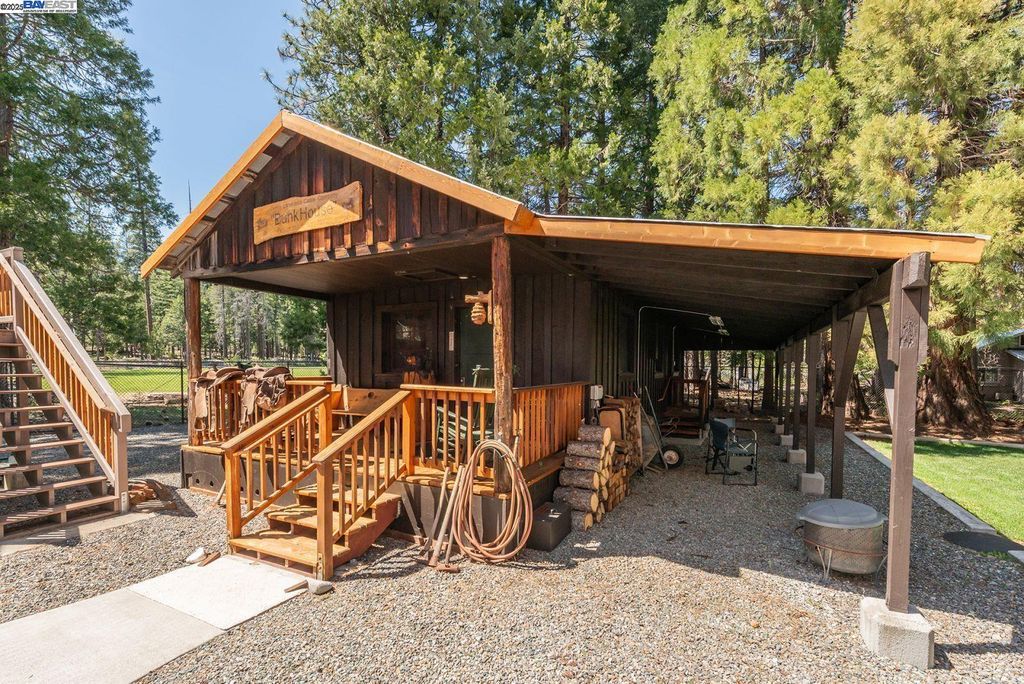 Two fully permitted homes on one parcel on .38 of an acre, the main home is a cedar log home offering approx 1,850 sf, a 3 bedroom /2 bath, cozy living room with wood stove insert, a convenient kitchen, the dining room is so bright and cheery with the wall of windows, you can access the side patio that is covered for all those BBQ's from the dining room as well. The primary bedroom is on the main level, offering dual closets, and new flooring. The two guest bedroom are upstairs with a full guest bathroom, one of the guest bedrooms features custom wains coating , all the doors in the home are of solid core wood doors. The ' Bunk House' is a fully permitted ADU on the property, the delightful living space, has a full kitchen, living room offers a wood stove, the tile work in the full bathroom is custom and new and a tiled surround shower, an office area and a charming country bedroom. The garage is oversized at 768 sf, and a drive thru garage with double doors, also a bonus room upstairs above the garage that can be closed in to make another room if needed. Property features a automatic generator. Back yard is completely fenced in, concrete driveway & MINUTES FROM TRINITY LAKE !