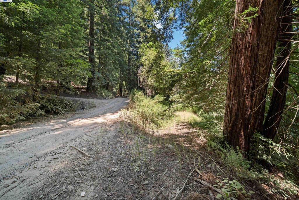 Tucked away on 11 acres of majestic redwoods, this 3-bedroom home offers peace, privacy, and natural beauty. Enjoy sweeping views from the expansive redwood deck overlooking a level front yard surrounded by gorgeous trees. A detached studio provides versatile space for guests, work, fitness, or creativity. Hidden trails lead to a stream with multiple flat, usable areas - ideal for gardening, recreation, or exploration. Designed for sustainable, off-grid living, the property features solar power, a private well, and DSL high-speed internet. Additional upgrades include a recently installed mini-split upstairs to optimize heating and cooling. Generous parking for guests is available. Located in a gated community within the Los Gatos School District and about 30 minutes from Silicon Valley, San Jose Airport, and the beaches of Santa Cruz, this mountain retreat offers rare seclusion without sacrificing convenience. Accessed via a private two-mile road - half paved, half unpaved - this property blends modern comfort with the tranquility of nature.