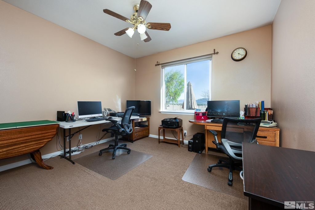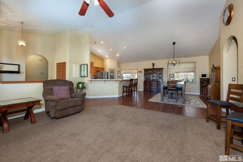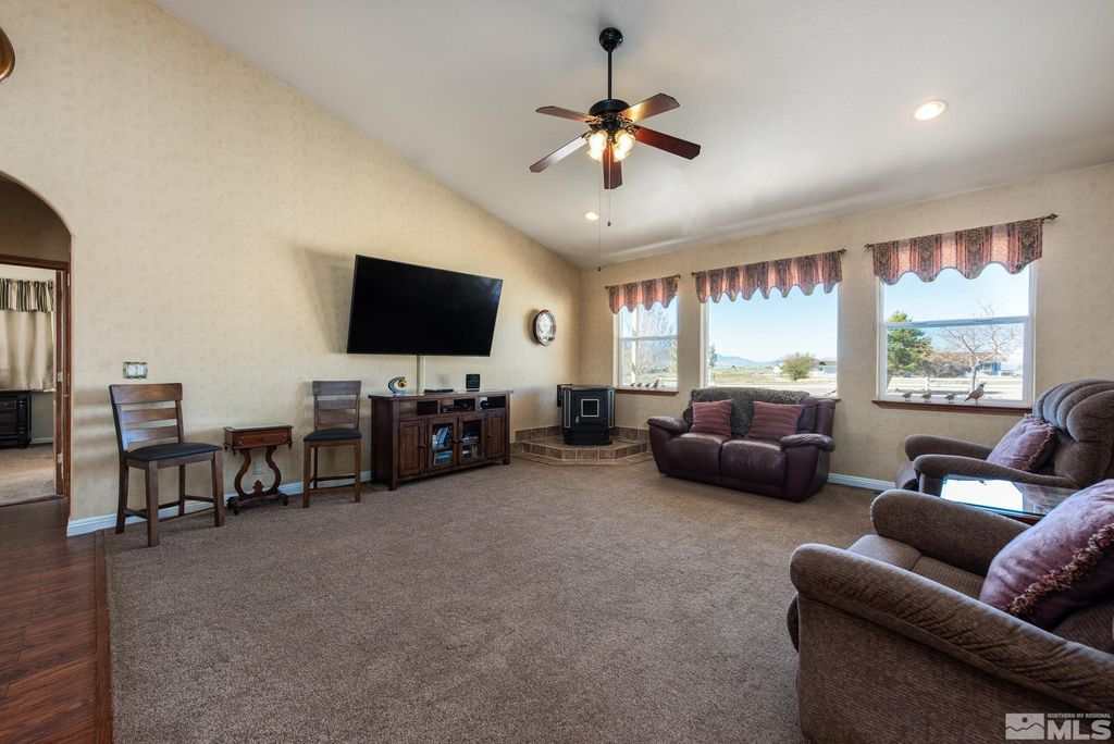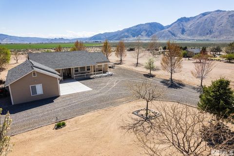 Views in all directions! Away from the crowds in quiet, scenic Smith Valley, this home offers comfort and utility for all lifestyles. Loads of room on the 4.8acre lot to set up you horse facilities or to build as big a workshop or toy barn as you will ever need. A great place to enjoy your off road vehicles! The 2469sf floor plan includes a 370sf heated and a/c'd rear addition to enjoy your morning coffee or sunsets. The split bedroom arrangement separates the primary bedroom from guest/family rooms and, lets you enjoy the view on waking. The remainder of the living space is a great room with high ceilings and an efficient pellet stove, and a convenient dining area adjacent to the kitchen with its breakfast bar. Great space for BBQ'ing and outdoor entertaining on the sheltered side of the home.Check out the pictures and virtual tour for more detail.