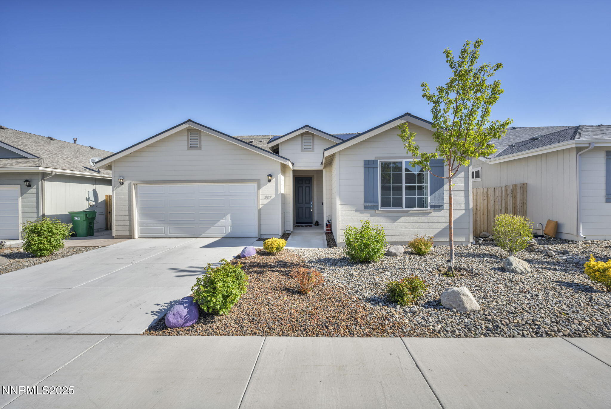 Walk up to this adorable and fully landscaped front yard, through the door, and into the wide entryway. The home features a desirable open floor plan, plus the primary bedroom is separate from the guest bedrooms. High Ceilings, and beautiful Luxury vinyl flooring throughout the entire home! Kitchen upgrades include custom white cabinets, beautiful granite countertops, a breakfast bar, a high-end commercial vent hood, and stainless steel appliances. Previous owners invested over 50,000 in stunning upgrades, which include plantation shutters. A walk-in shower in the guest bathroom, and Piedrafina marble in both showers. The slider in the dining room leads to a colorful patio with a gazebo and a newer hot tub for your outdoor enjoyment. The rear yard is fully landscaped, complete with an automatic watering system. Fruit trees include: Apple, Cherry, Nectarine, and Plum, and two raised garden beds are ready for your garden, plus mountain views.