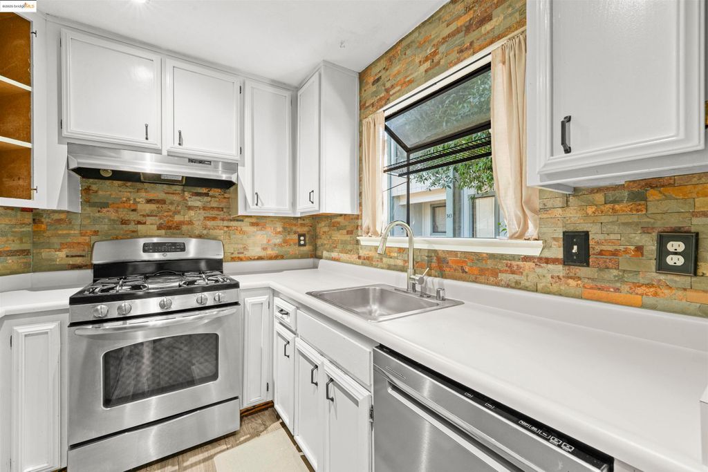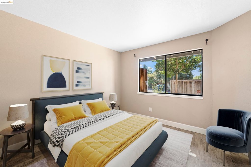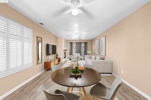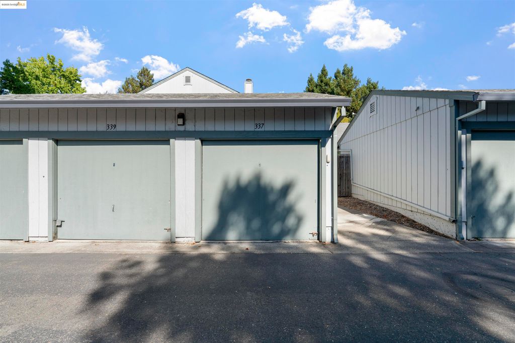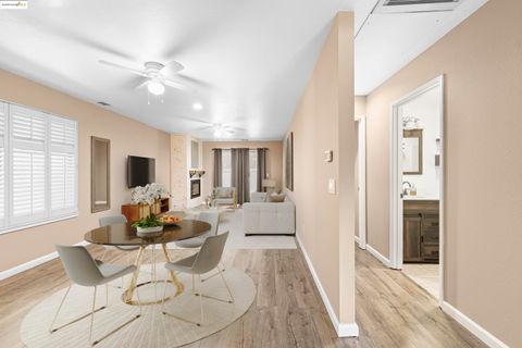 Discover this private one-story end unit, tucked away at the back of a beautifully maintained complex. Filled with natural light, the home features an inviting open layout, a tiled fireplace, and a convenient in-unit laundry room. Step outside to a peaceful patio with a serene tree-lined backdrop or enjoy a dip in the community pool. The unit comes with a parking spot and detached garage. Enjoy the best of both worlds - easy access to Hwy 12 while still enjoying quiet, private living. Property virtually staged.