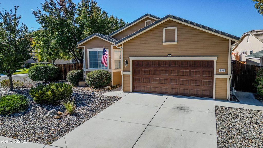 This One Is Special! Tucked away on a quiet cul-de-sac in the desirable Dayton Valley Golf community, this beautiful home stands out for all the right reasons. Updated, move-in ready, and well maintained - every detail has been thoughtfully handled so you can simply settle in and enjoy. Inside, you'll find tasteful updates throughout, including newer carpet and blinds, and stunning custom tile flowing through the entry, kitchen, baths, and laundry. Both bathrooms have been beautifully refreshed - granite countertops, a gorgeous tile shower in the primary suite, modern fixtures, and more. Updated lighting and ceiling fans enhance the feel, while the whole-house water softener and filtration system add comfort and quality. The inviting entry opens to a cozy living room and dining area, leading to a spacious kitchen featuring granite countertops, a center island, a five-burner gas range, a newer microwave, and a Solatube for added natural light. The adjoining family room provides the perfect gathering space with a stand alone electric fireplace included and opens to a quaint, private backyard with a covered patio - an ideal retreat for quiet relaxation or entertaining. Outside, you'll appreciate the low-maintenance landscaping with automatic sprinklers and drip system, plus two spacious storage sheds, Leaf Filter gutters, and pride of ownership throughout. Beautiful inside and out, this home offers the perfect blend of comfort, style, and serenity - all within the peaceful setting of Dayton Valley Golf.