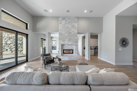 A stunning setting for an elevated lifestyle. A MOVE IN READY home presents a unique opportunity in this semi-custom NEW Homes Community! Surrounded by picturesque mountains and two award winning golf courses in historic Genoa, NV. The combination of mountain modern architecture, large homesites, and located in the heart of Northern Nevada adventure sets The Preserve apart from the rest. This homesite, #85 is a Series 3 floorplan (3514sf),, features 4 ensuite bedrooms all with walk in closets, 4 car garage, plenty of flex space and tall 14/12/10 foot ceilings. The spacious covered patio with fireplace is the perfect spot for sitting or outdoor entertaining. LIVE YOUR BEST with 300 days of sun annually. The ruggedly handsome mountains of Northern Nevada, quick easy access to Lake Tahoe and endless surrounding trails offer a year round playground with easy access to adventure. The tax-friendly region is home to a thriving metro area, plenty of shopping, exquisite restaurants, events an an International airport. The community is located on two Championship golf courses, offers a health and fitness center which features a gym, pool, spa, group fitness room with scheduled classes, tennis and pickleball courts, showers, locker rooms, and a Community Meeting room with organized clubs and activities. Agent must be present with Client at first visit to the Community to register. Sales Office/Model Home is open WED-SUN 10am-5pm, appointments are recommended. Taxes are currently on land value only and will be reassessed.