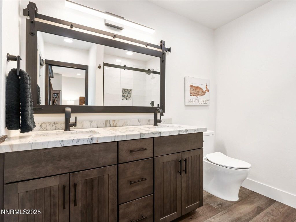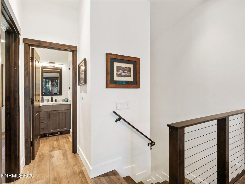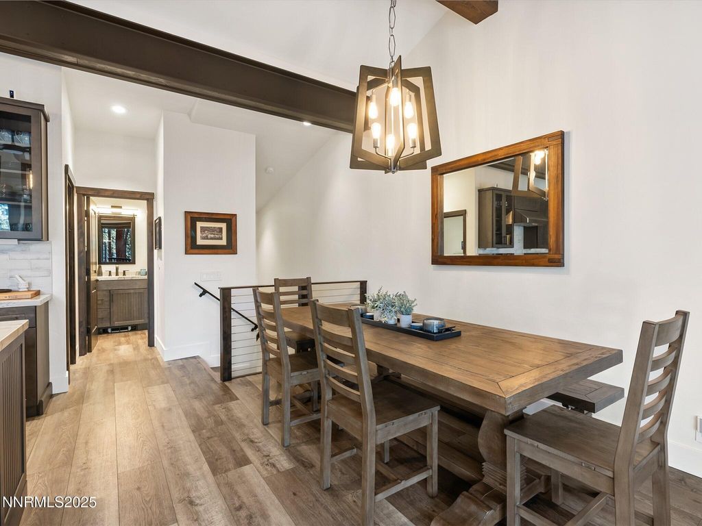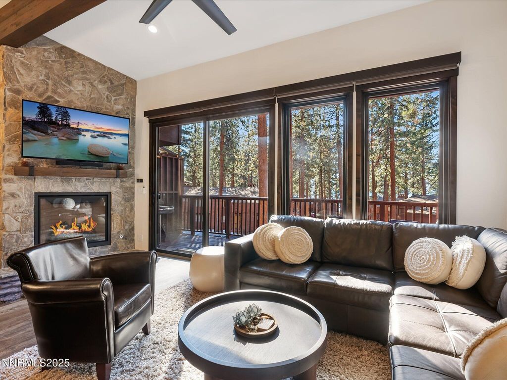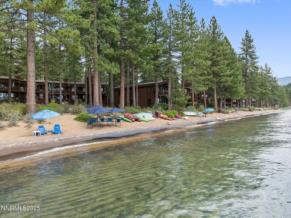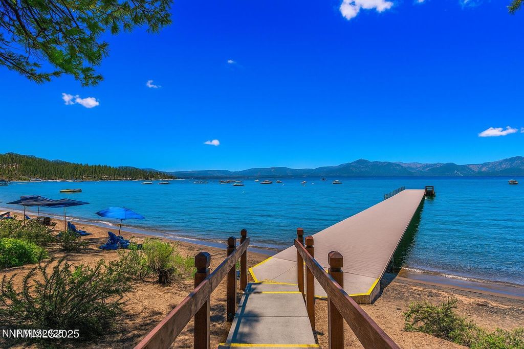 Welcome to Pinewild Unit 60 - a rare opportunity to own a fully reimagined Mountain Modern townhome in one of Lake Tahoe's most exclusive gated lakefront communities. Located in the exclusive lakefront, gated community of Pinewild, this exquisitely remodeled 3-bedroom, 3-bathroom residence offers 1,510 square feet of thoughtfully curated living space, including a custom-built, permitted bonus room. Every inch of this home has been meticulously redesigned with timeless finishes, high-end materials, and permitted structural enhancements. Inspections are complete, repairs have been professionally finished, and the home is turnkey, move-in ready. The great room sets the tone with vaulted ceilings, rustic exposed beams, and a stunning floor-to-ceiling stone fireplace with a 42-inch gas insert, glowing embers, and remote operation. Steel beams have been discreetly added to eliminate posts, opening up the kitchen and living areas to create a seamless flow and panoramic perspective. Over 25 percent more lake-facing glass has been added with Anderson 100 Series Low-E windows and sliders - flooding the home with natural light, filtered lake views, and pine-filled scenery. The kitchen is a masterclass in design and function, featuring natural quartzite slab counters, an oversized island with apron-front Silgranit sink and motion-sense faucet, custom soft-close cabinetry, under-cabinet and soffit lighting, and premium KitchenAid appliances - including a commercial-grade dual-fuel range, built-in microwave, ultra-quiet dishwasher, French door refrigerator with ice/water, and Newair dual-zone wine fridge. Spa-worthy bathrooms showcase luxury tilework, frameless glass enclosures, Moen Deux matte black fixtures, and custom vanities. The upstairs bath features an oversized walk-in shower with a frameless glass enclosure, while the downstairs guest bath offers a deep soaking tub with tile surround and sleek bypass glass doors. A newly added 70-square-foot bonus room above the entry provides a flexible retreat, office, or cozy reading nook. Additional upgrades include central air conditioning, solid knotty alder doors and millwork, modern cable-railed alder staircase, wide-plank luxury vinyl flooring throughout with no thresholds, custom closets with mirrored doors and built-ins, Hunter Douglas electric blinds with WiFi control, smart switches and thermostat, Ring doorbell, Yale WiFi lock, new electrical subpanel, full home rewiring, all-new LED can lighting and fixtures, soundproof insulation in every wall, newly reconfigured plumbing and ventilation for raised ceilings, and a hose bib at the front exterior. The primary suite features a walk-in closet and direct access to a tranquil redwood deck, newly stained and expanded to the full width of the upper level. The property also includes a dedicated laundry room with new GE washer and dryer and modular shelving. Set within the prestigious Pinewild community, residents enjoy resort-style amenities including a private sandy beach, pier, deeded buoys, tennis and pickleball courts, beautifully landscaped grounds with a signature water feature, and gated security. The HOA covers beach and pier access, exterior maintenance, snow and trash removal, fire insurance, water/sewer, and landscaping. Pinewild was thoughtfully developed in 1974 and remains one of the most cherished enclaves along the lake. Ideally situated just 6 miles from Heavenly's Boulder Lodge for world-class skiing and only 3 miles to the Stateline corridor for shopping, dining, and entertainment, this exceptional townhome offers the ultimate in Tahoe luxury. Blending refined mountain modern charm with smart-home sophistication and unbeatable lifestyle access, this is the perfect second home, full-time residence, or turnkey vacation retreat. Legal Disclaimer: Property photos may include digital enhancements and/or virtual staging. Actual property condition may differ.
