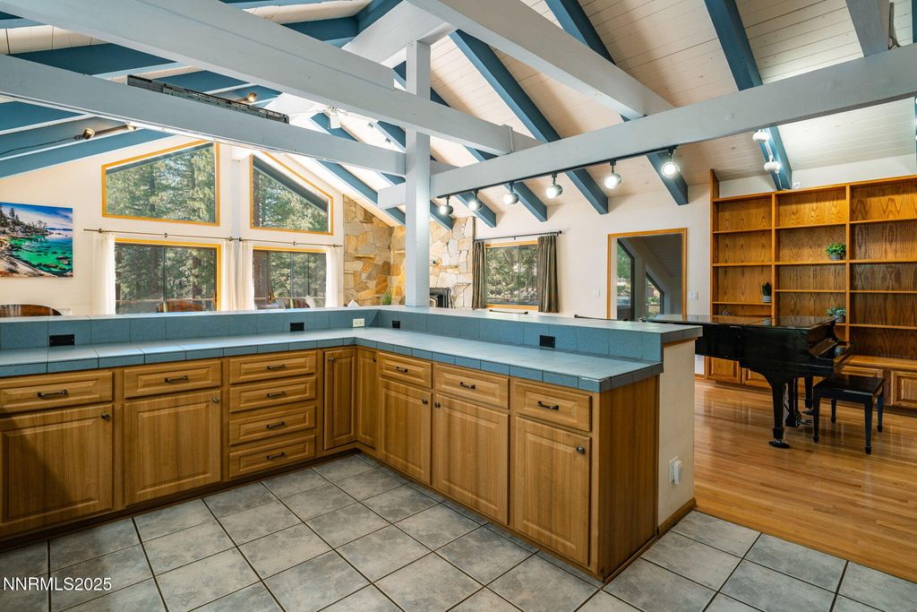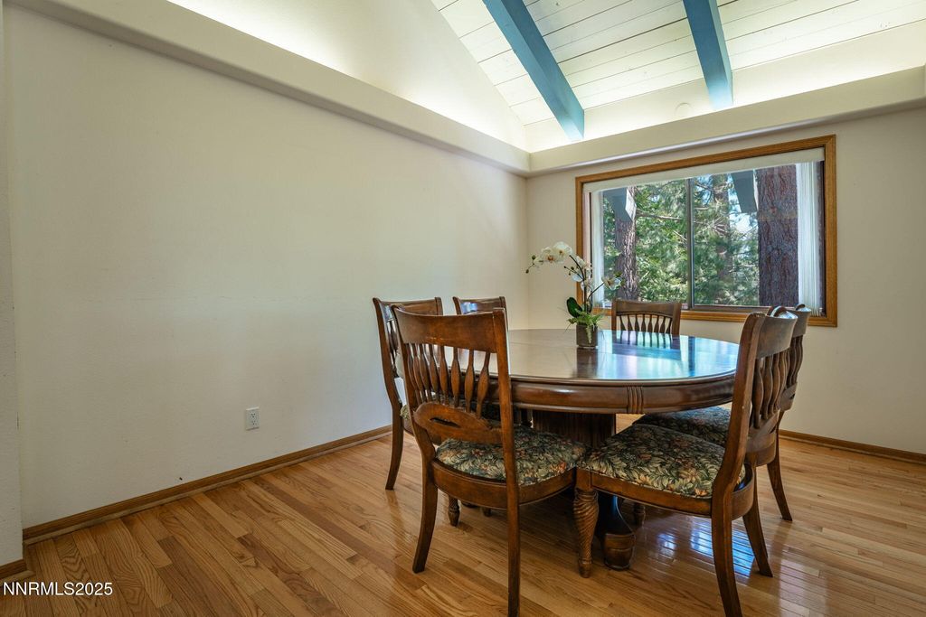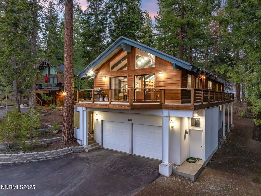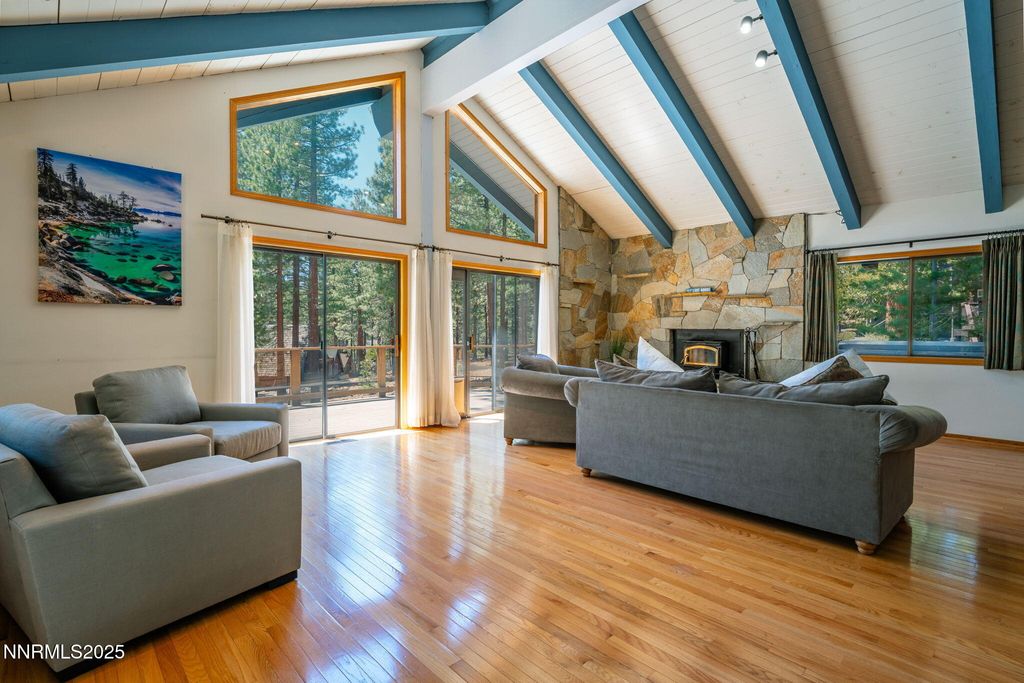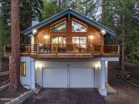 This expansive 5-bedroom, 4-bath home offers an ideal layout with over 2,800 square feet of space. Set against a serene forest backdrop and adjoining a Forest Service lot, privacy and tranquility abound. The light-filled interior features soaring cathedral ceilings and expansive windows that seamlessly integrate indoor and outdoor living. Enjoy peaks of the lake from the deck - perfect for starting your day with a cup of coffee or unwinding while watching the sunset. With a generous two-car garage for all your Tahoe adventure gear, this home is perfect for both family living and hosting gatherings. Residents also enjoy access to local amenities such as private beaches, a ski resort, golf courses, and more - all within the tax-friendly state of Nevada. This home offers the perfect balance of an ideal quiet location and stunning views, making it the perfect place to call your Tahoe home.