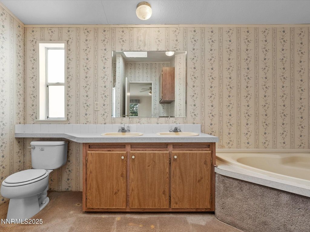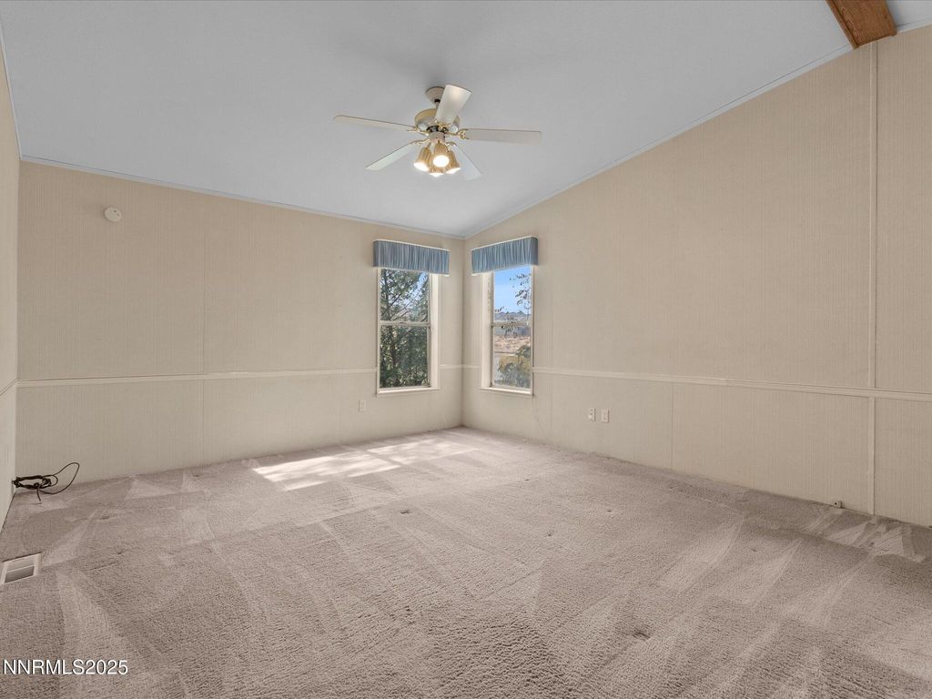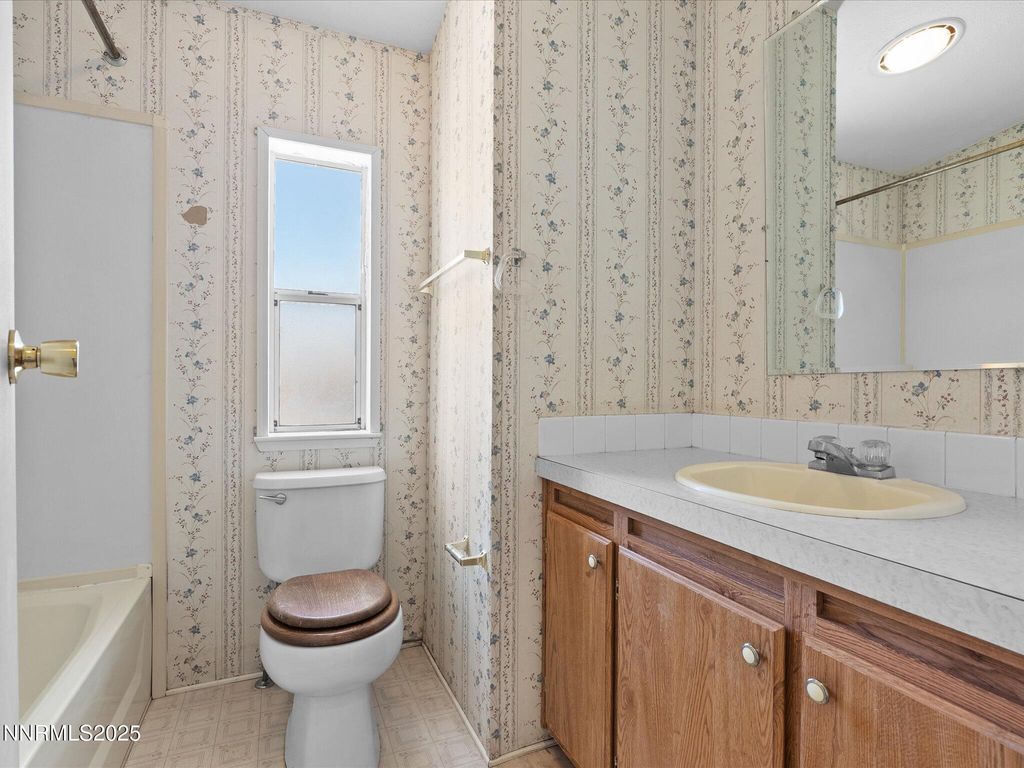 Your Countryside Retreat Awaits! Welcome home to Mountain Lane, where peaceful country living meets convenience! This charming property is nestled on over a quarter-acre in a quaint community, offering proximity to local ranches, farmers, and the beautiful countryside. This home features three bedrooms and two bathrooms with a highly functional and airy layout. The spacious, well-lit living area flows seamlessly into the dining room, perfect for entertaining. The kitchen is designed for the home chef, boasting a sizable pantry, a breakfast bar for casual dining and abundant counter space. A major bonus: the oversized laundry room comes complete with an included washer and dryer! Retreat to the primary bedroom, a true ensuite featuring dual vanities, a separate garden tub and a walk-in shower. The home is bathed in natural light, enhanced by two skylights and vaulted ceilings that lend a sense of grandeur, making the space feel larger than expected. With no HOA and ample land, you have endless possibilities for parking and transforming your quarter-acre into the outdoor oasis of your dreams. Located in Yerington, a wonderful rural community just outside Silver Springs, NV, commuting to USA Parkway is a breeze. Opportunities like this - a well-priced converted manufactured home with these amenities - don't last long. Come see it today and make it yours! Note to Agents: This sale is subject to court approval. Please see private remarks for details.