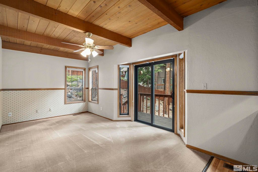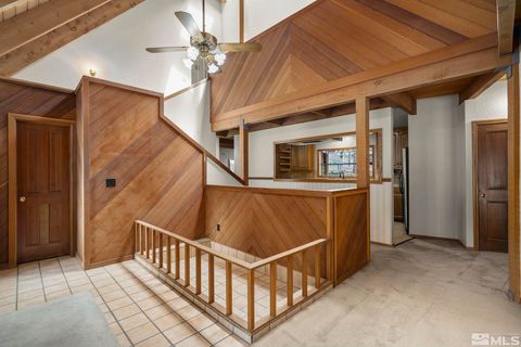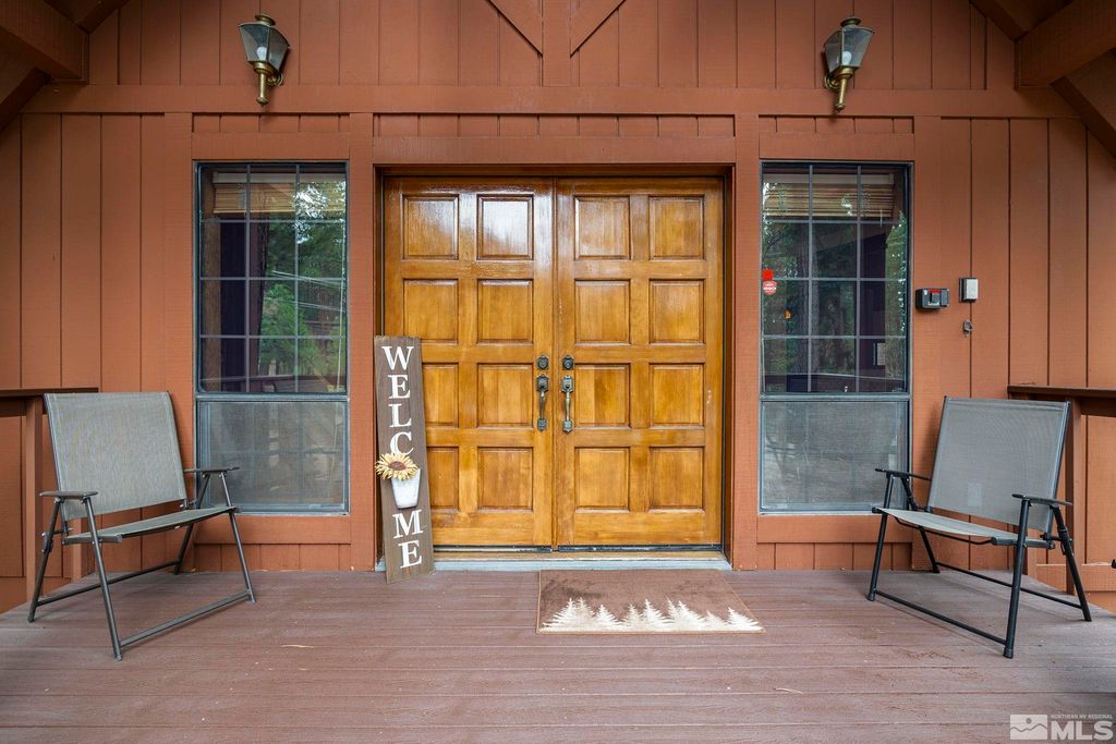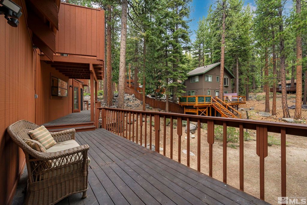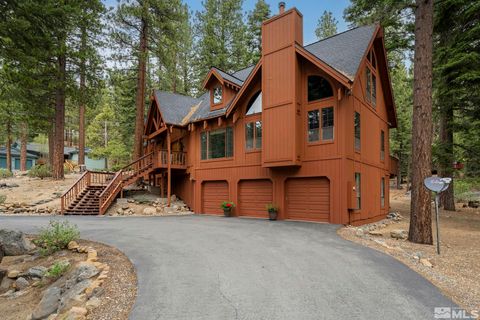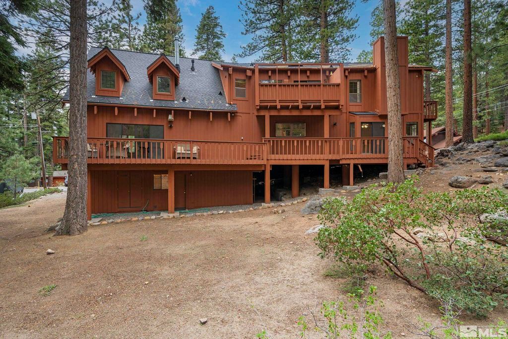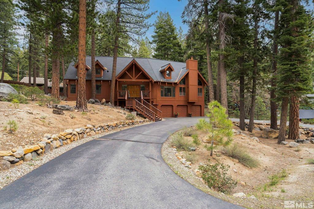 Tahoe Lodge-style home on large corner lot with 3-car garage and RV/boat parking. This 3BD/3BA retreat offers spacious indoor/outdoor living, including a guest suite on the main level that may serve as an alternate primary. Enjoy an open dining area, wet bar, and a cozy breakfast nook with access to a large entertaining deck. Upstairs features a luxe primary suite with spa tub, stone fireplace, and sunset deck, plus a second living area with a fireplace. Nestled on a generous corner lot, this beautifully maintained home blends mountain charm with modern comfort. The upper-level primary suite features a walk-around closet, spa-inspired bath, stone fireplace, and private sunset-viewing deck. A second upstairs bedroom, full bath, and skylit family room with a fireplace offer flexibility and warmth. Recent updates include freshly cleaned carpets, a new water heater, and two newer furnaces. Property is BMP compliant with completed defensible space, meeting insurance requirements. Offered below appraised value (4/25/25), this home presents outstanding value and timeless Tahoe appeal.