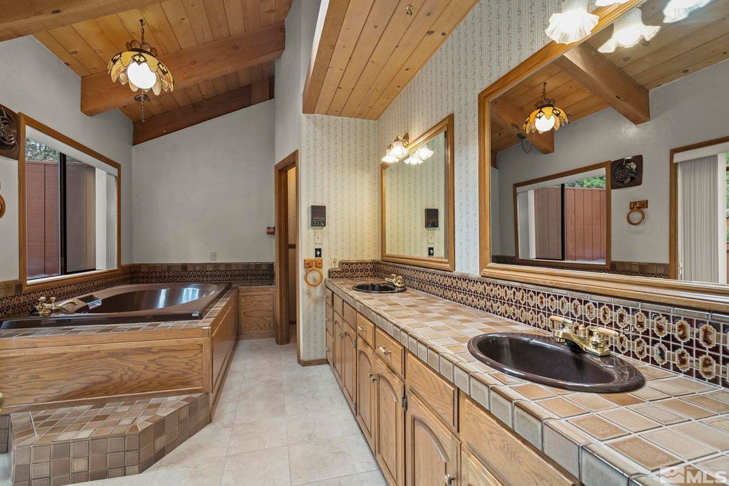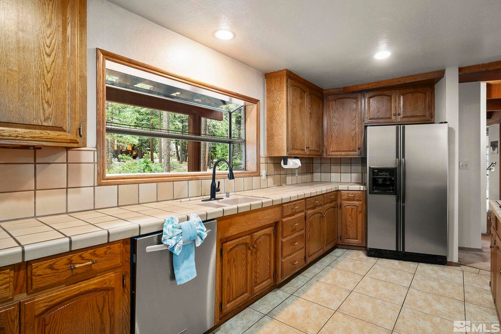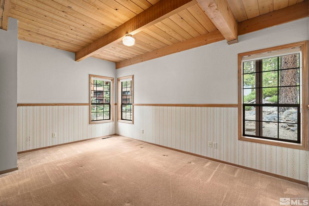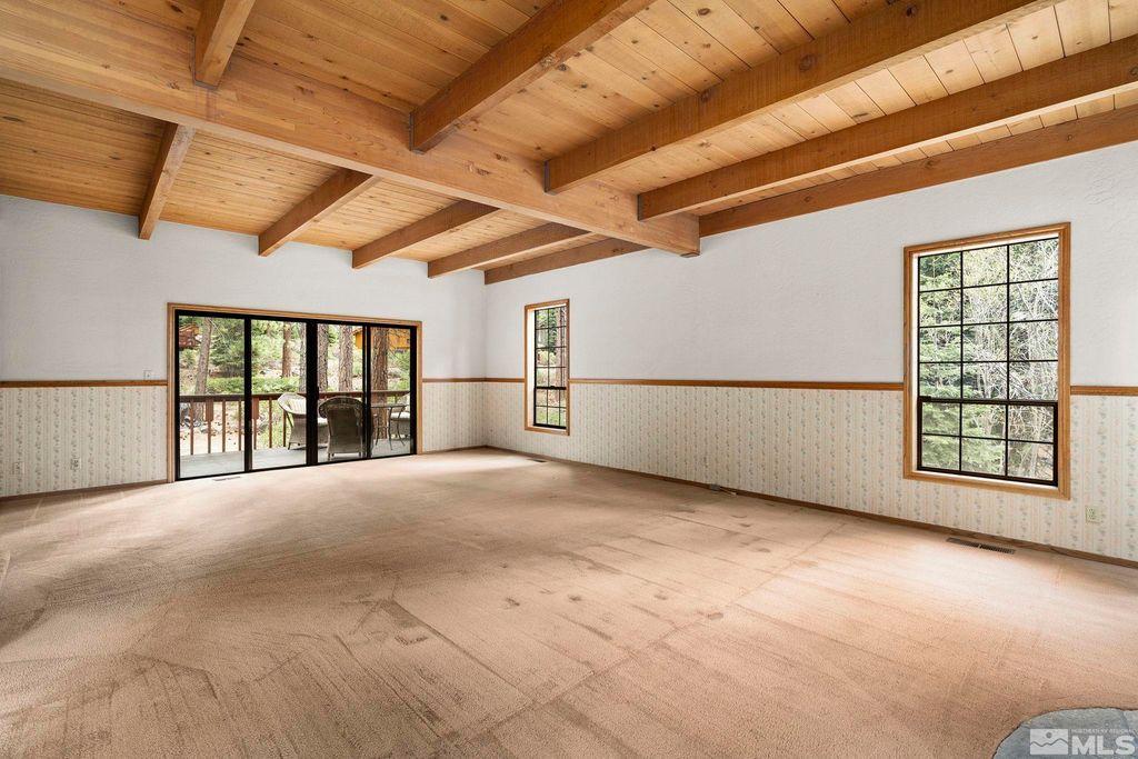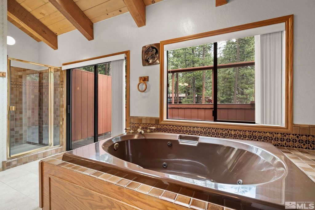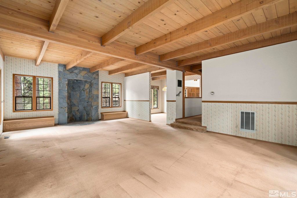 Tahoe Lodge-style home on large corner lot with 3-car garage and RV/boat parking. This 3BD/3BA retreat offers spacious indoor/outdoor living, including a guest suite on the main level that may serve as an alternate primary. Enjoy an open dining area, wet bar, and a cozy breakfast nook with access to a large entertaining deck. Upstairs features a luxe primary suite with spa tub, stone fireplace, and sunset deck, plus a second living area with a fireplace. Nestled on a generous corner lot, this beautifully maintained home blends mountain charm with modern comfort. The upper-level primary suite features a walk-around closet, spa-inspired bath, stone fireplace, and private sunset-viewing deck. A second upstairs bedroom, full bath, and skylit family room with a fireplace offer flexibility and warmth. Recent updates include freshly cleaned carpets, a new water heater, and two newer furnaces. Property is BMP compliant with completed defensible space, meeting insurance requirements. Offered below appraised value (4/25/25), this home presents outstanding value and timeless Tahoe appeal.