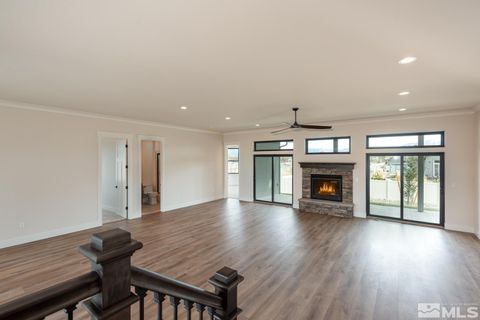 Located within the Holstein community on a quiet and peaceful cul-de-sac. Easy access to all "in - town" conveniences and a short drive to the world class natural beauty and recreation of Lake Tahoe. Exceptional views from the soaring ceilings and high windows that bring in ample natural light. Inviting covered entry and rear covered patio to enjoy the outdoor serenity of this location. Complete with front yard landscaping. Built by established local builder of over 35 years., Semi custom amenities throughout and situated on a generously sized home site.